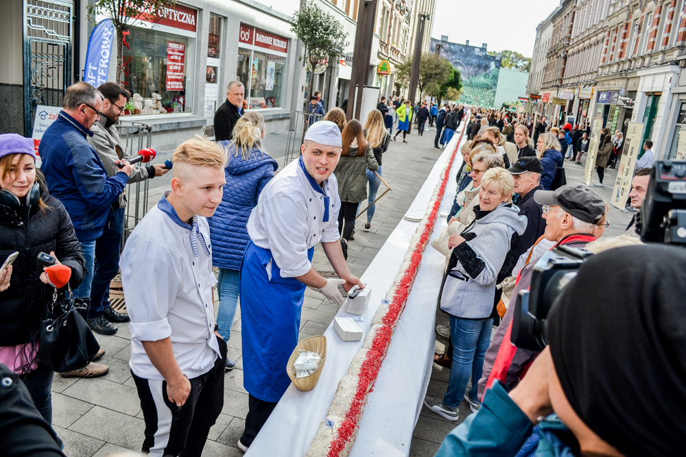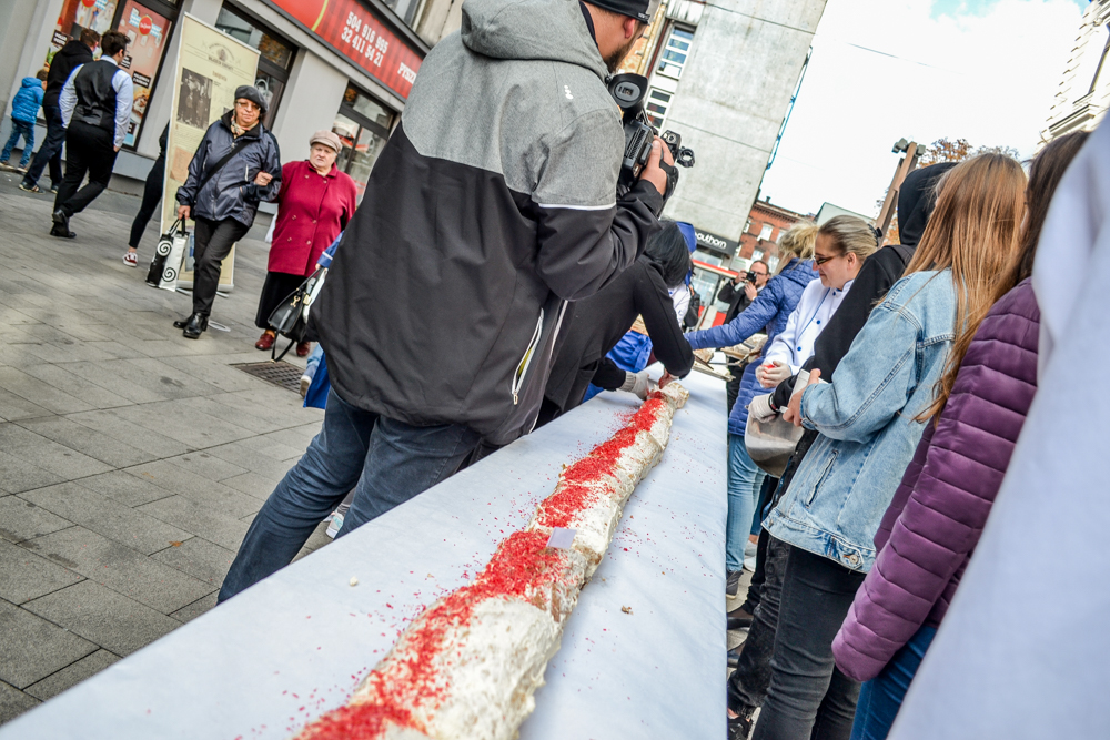 W wyjątkowo apetyczny sposób 100-lecie odzyskania niepodległości postanowili uczcić uczniowie i pedagodzy z Zespołu Szkół Gastronomiczno-Usługowych w Chorzowie. Przygotowali ciasto mierzące ponad 100 metrów!