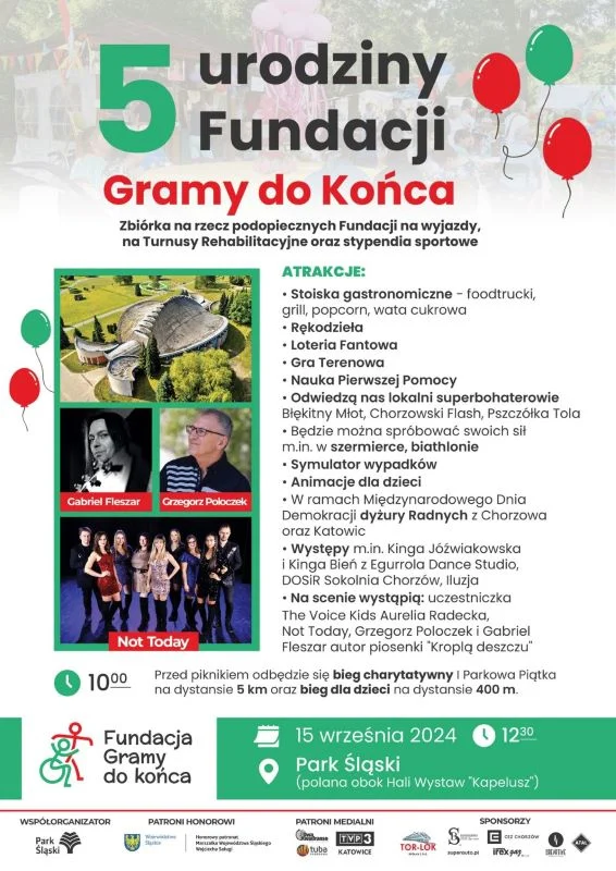 15 września 5. urodziny Fundacji „Gramy do końca” w Parku Śląskim