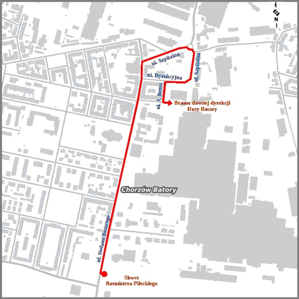 Trasa pochodu rozpocznie się na Skwerze Rotmistrza Pileckiego i prowadzić będzie ulicami Batorego, Szpitalną, Dyrekcyjną i Bema pod bramę dawnej dyrekcji Huty Batory. Celem zapewnienia bezpieczeństwa uczestnikom pochodu wstrzymany zostanie ruchu pojazdów.