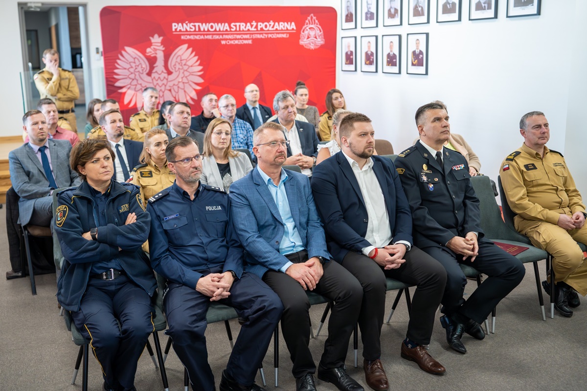W Komendzie Miejskiej Państwowej Straży Pożarnej w Chorzowie odbyło się istotne spotkanie poświęcone problematyce tlenku węgla. W wydarzeniu uczestniczyli m.in. Komendant Miejski Policji, Komendant Straży Miejskiej, radni oraz zarządcy nieruchomości.