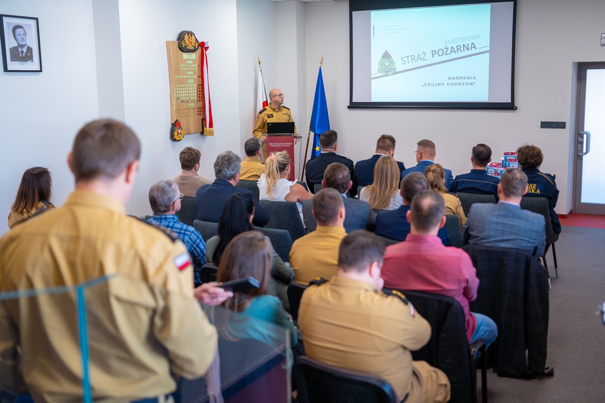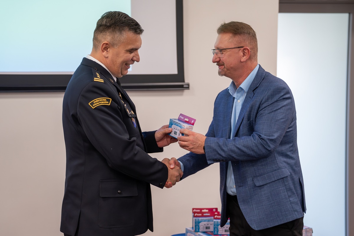 Podczas spotkania Jacek Króliczek, II Zastępca Prezydenta Chorzowa, przekazał strażakom 52 czujki tlenku węgla, które zostały zakupione przez Urząd Miasta. Czujki będą wręczane mieszkańcom przez strażaków podczas interwencji związanych z zatruciami.
