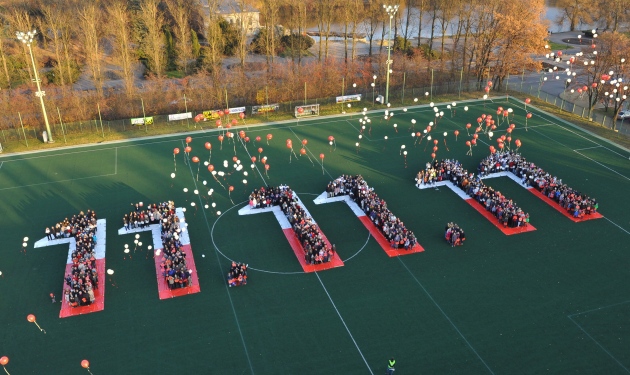 Około godziny 15:00 przybyli uczestnicy ustawili się na przygotowanych miejscach na murawie, dzięki czemu utworzyli tzw. “żywą datę” – 11.11.11. Temu niezwykłemu widokowi z podnośnika wykonano pamiątkowe zdjęcie.