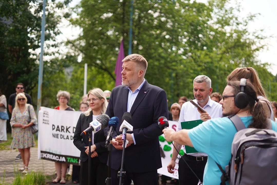 Adrian Zandberg i Maciej Konieczny wyrażają sprzeciw wobec zabudowy Parku Śląskiego