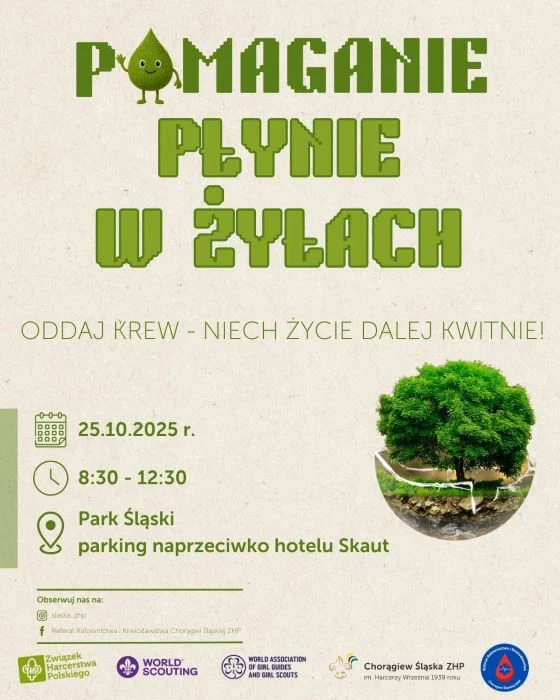 Każda kropla jest na wagę złota! Już 25 października (sobota) w TAURON Parku Śląskim w Chorzowie odbędzie się wyjątkowa akcja krwiodawstwa, organizowana wspólnie przez Chorągiew Śląską ZHP i Park Śląski. To doskonała okazja, by zrobić coś dobrego i pokazać, że pomaganie naprawdę mamy w swojej naturze.