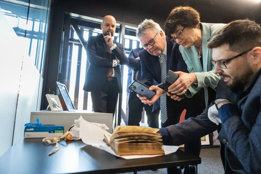 W spotkaniu z Ambasadorem uczestniczył Zastępca Prezydenta Miasta Chorzów Marcin Michalik, który przedstawił działania realizowane przez władze lokalne na rzecz zachowania dziedzictwa kulturowego. Ponadto w spotkaniu uczestniczyli również Adam Kowalski – dyrektor Muzeum Hutnictwa oraz prof. Maria Sibińska z Uniwersytetu Gdańskiego i Emiliana Konopka z Ambasady Islandzkiej w Polsce. Stan zachowania księgi został przez naszych gości oceniony bardzo wysoko. Ambasador zadeklarował pomoc w nawiązaniu kontaktu z badaczami z Islandii, którzy mogliby wesprzeć Muzeum w dalszych ustaleniach dotyczących pochodzenia tego wyjątkowego starodruku.