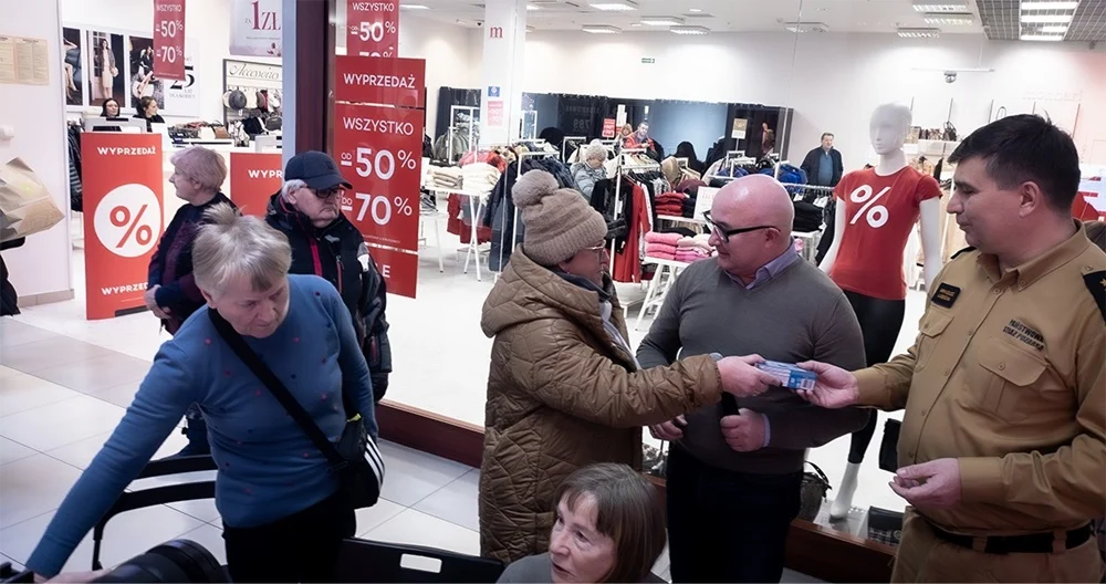 Andrzej Kotala i strażacy rozdawali czujniki tlenku węgla w AKS-ie