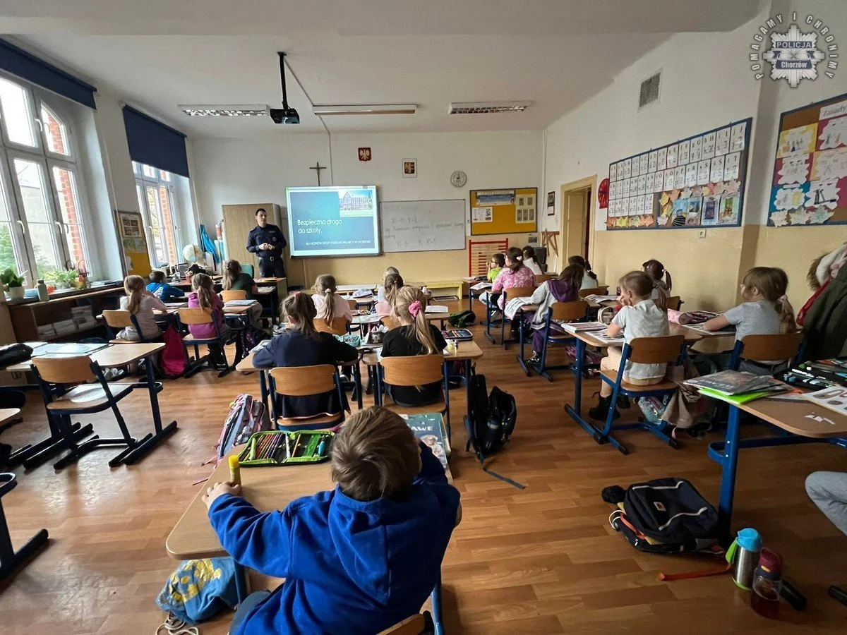 Bezpieczeństwo dzieci na drodze – spotkanie z policjantami w Chorzowie