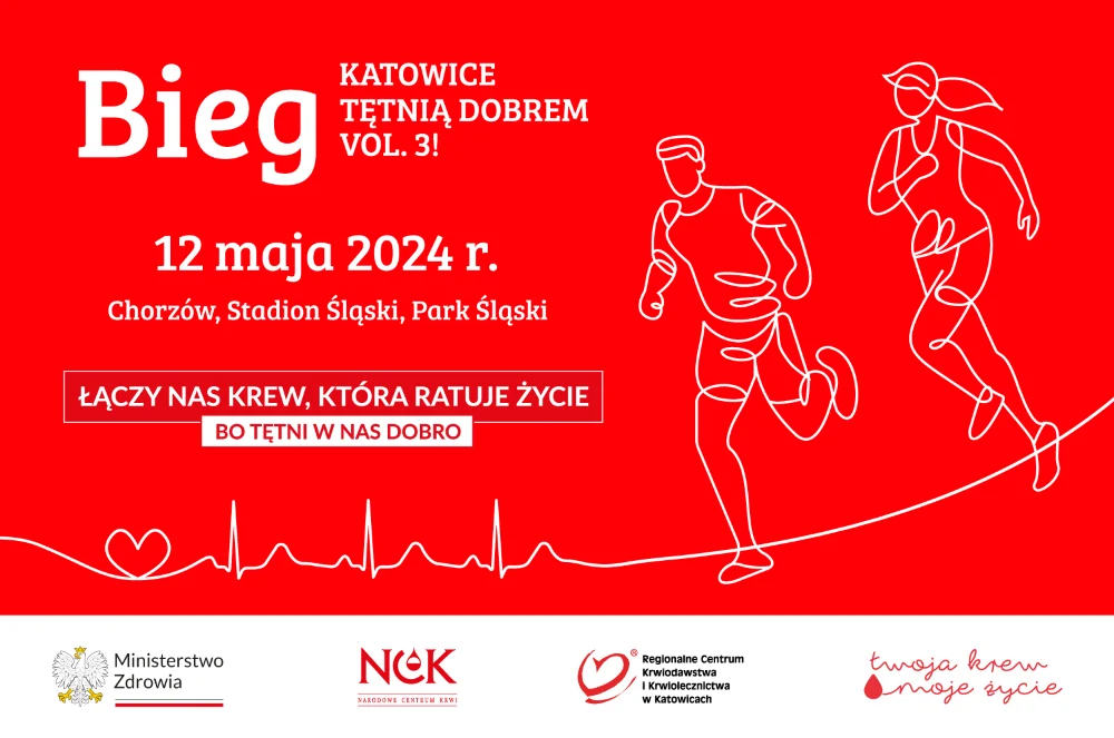 12 maja spod Stadionu Śląskiego po raz kolejny wystartuje bieg pod hasłem „Katowice tętnią dobrem”. To nie tylko wydarzenie sportowe, ale też świetna okazja, by oddać krew i spędzić czas we wspaniałej atmosferze. Każdy może wziąć udział.