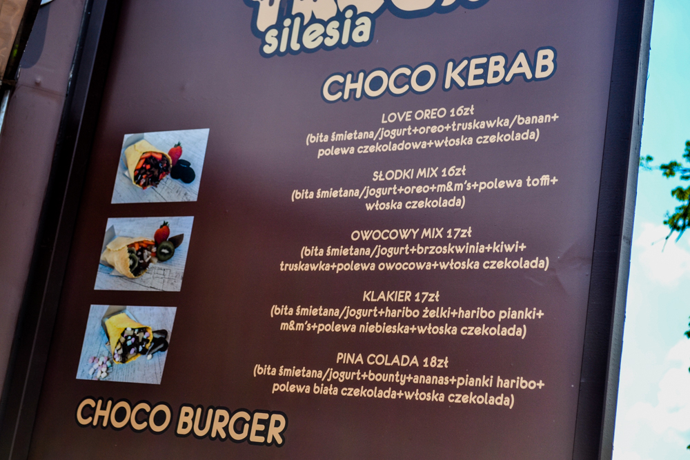 Samochodów jest około 10, mało, w porównaniu z innymi miastami lub imprezami, które organizowano przy kanale regatowym. To jednak nie powinno przeszkadzać, bo wybór jest całkiem spory. Są burgery i… czekoladowe kebaby, frytki, lody, zapiekanki, kurczak i kiełbaski z grilla. Nawet krupnioki, więc każdy powinien być ukontentowany.