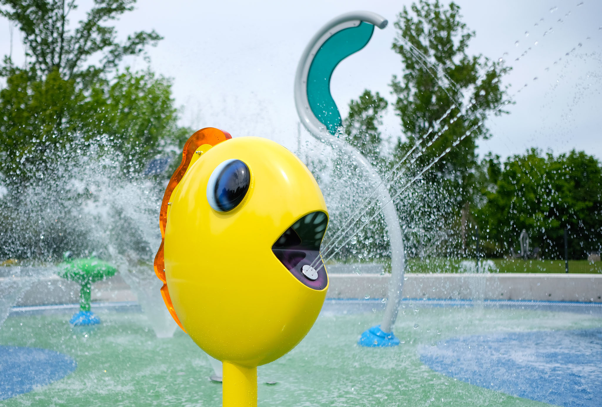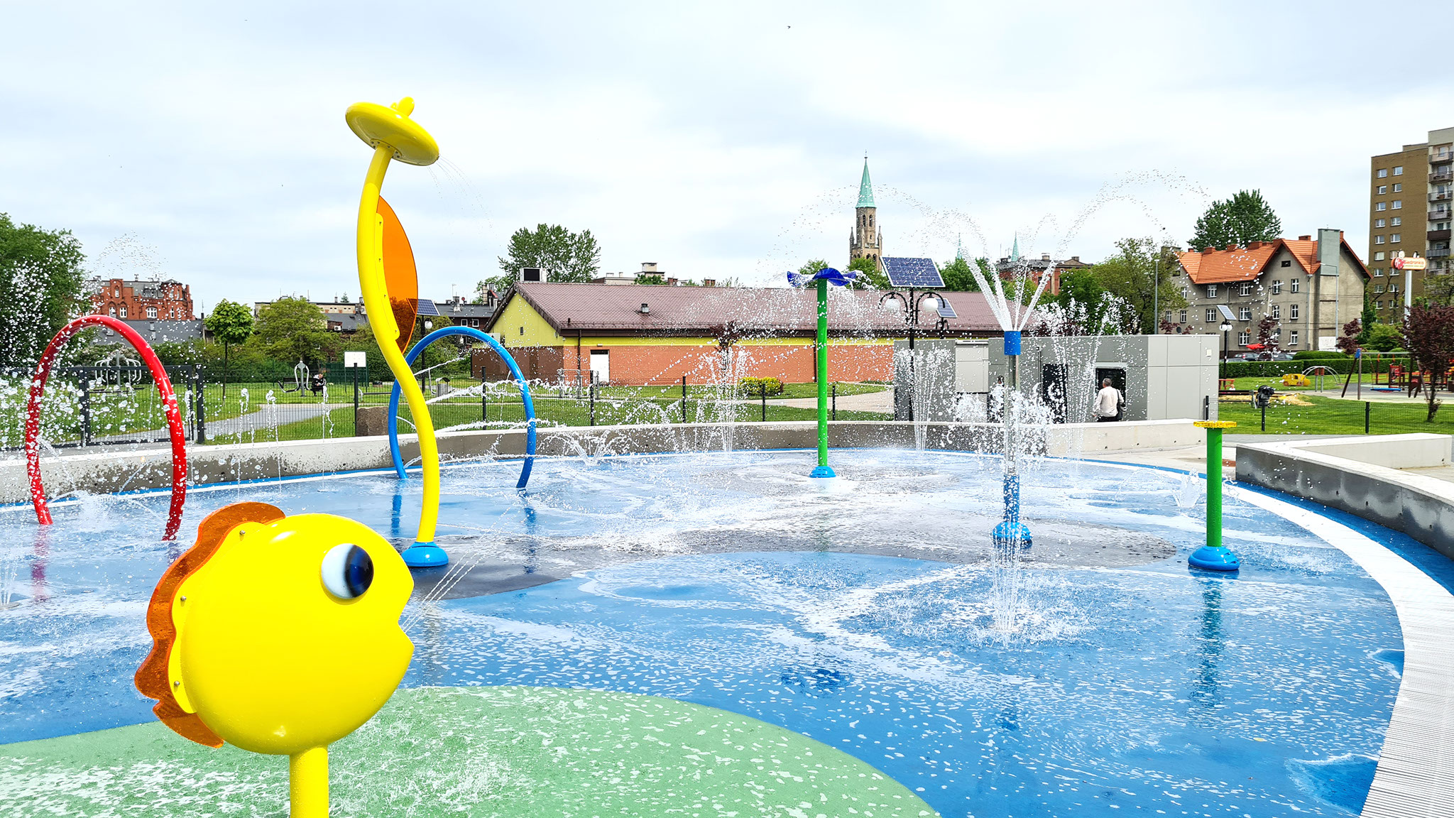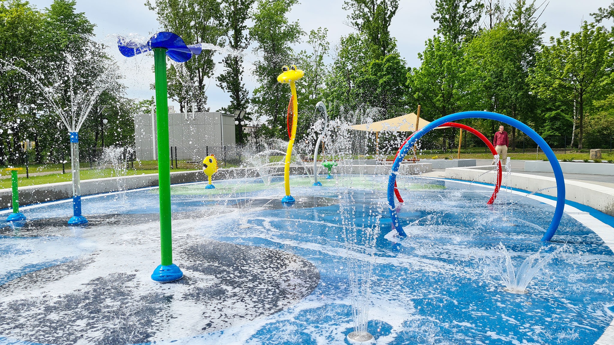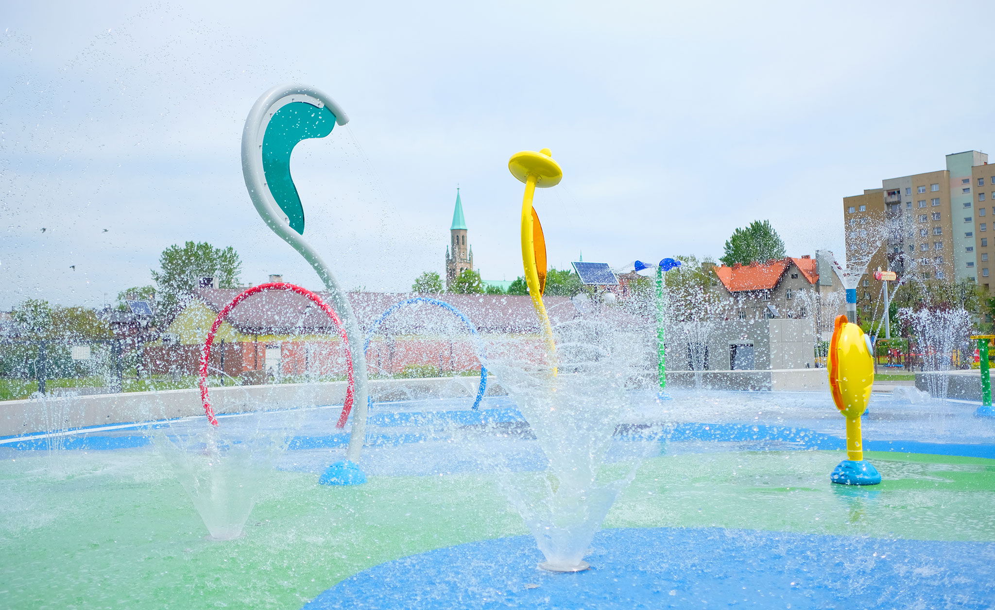 W ubiegłym roku powstała niecka z urządzeniami, strefa wypoczynku, siedziska i ścieżki. Teraz zamontowano kilkanaście urządzeń znajdujących się w strefie wodnej zabawy m.in. wulkan, rybkę, dżdżownicę, tunel czy żabkę. Obiekt jest wyposażony w brodziki i został dostosowany do osób z niepełnosprawnościami. Wieczorami zaplanowano pokaz podświetlanych fontann.