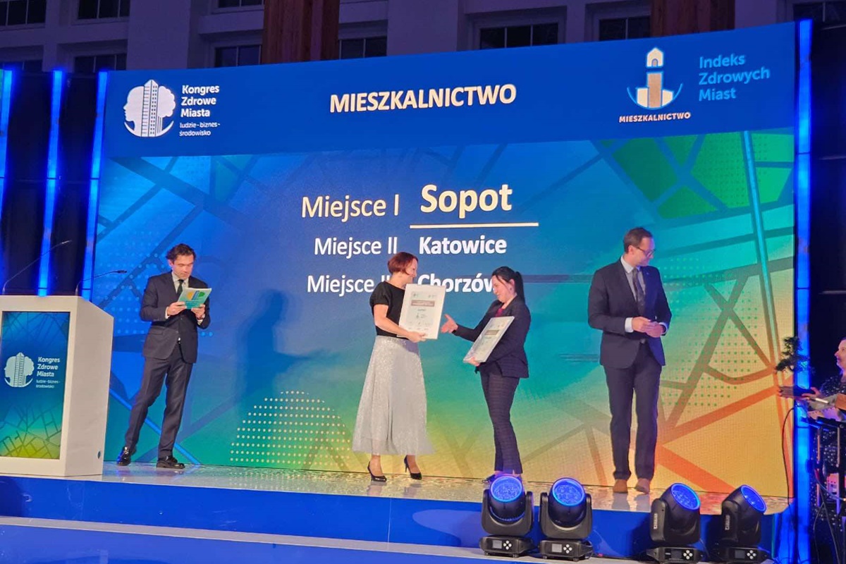 23 września odbyła się oficjalna gala plebiscytu Indeks Zdrowych Miast. Chorzów został wyróżniony dwukrotnie – zdobył I miejsce w kategorii “Przestrzeń” oraz III miejsce w kategorii “Mieszkalnictwo”. To wielkie wyróżnienie dla naszego miasta, które nieustannie się rozwija. Na wydarzeniu obecni byli przedstawiciele chorzowskiego samorządu: Elżbieta Popielska, I zastępca prezydenta miasta, Adam Szeja, dyrektor Wydziału Architektury, Budownictwa i Gospodarki Przestrzennej, oraz Maciej Mostowik, dyrektor Wydziału Zasobów Komunalnych.
