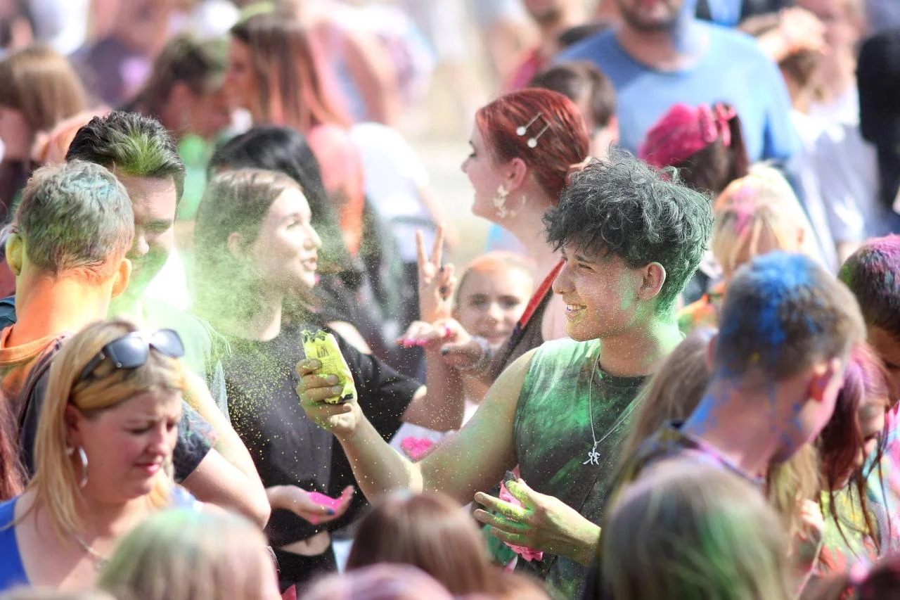 Festiwal Kolorów w Chorzowie to przede wszystkim radość wyrażona przez barwy i muzykę. W tym roku uczestnicy mogli korzystać z aż 11 różnych kolorów Holi – od żółtego, przez czerwony i niebieski, aż po fioletowy. Te bezpieczne dla środowiska proszki są nieszkodliwe, łatwe do zmycia z ubrań i skóry, a przede wszystkim – tworzą wyjątkowy klimat wspólnej zabawy.