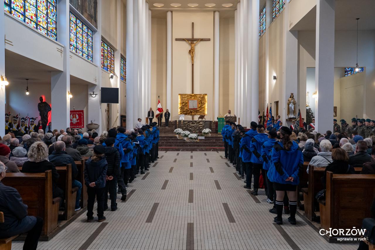 Uroczystości związane ze Świętem Niepodległości rozpoczęły się w Chorzowie o godzinie 10:00 w Sanktuarium Św. Floriana. W trakcie tradycyjnej Mszy św. zgromadzeni mieszkańcy miasta powierzyli w intencji Ojczyznę, która w 1918 roku, została uwolniona z zaborów, odradzając się na nowo. Po zakończonej liturgii odbył się wspólny przemarsz, w którym udział wzięły władze miasta, przedstawiciele chorzowskich szkół, instytucji i stowarzyszeń oraz zgromadzeni mieszkańcy. W patriotycznej atmosferze, w akompaniamencie muzyki granej przez Chorzowski Brass Band uczestnicy skierowali się w stronę Pomnika Ku Czci Poległych Żołnierzy 75. Pułku Piechoty, gdzie odbyła się druga część porannego wydarzenia.