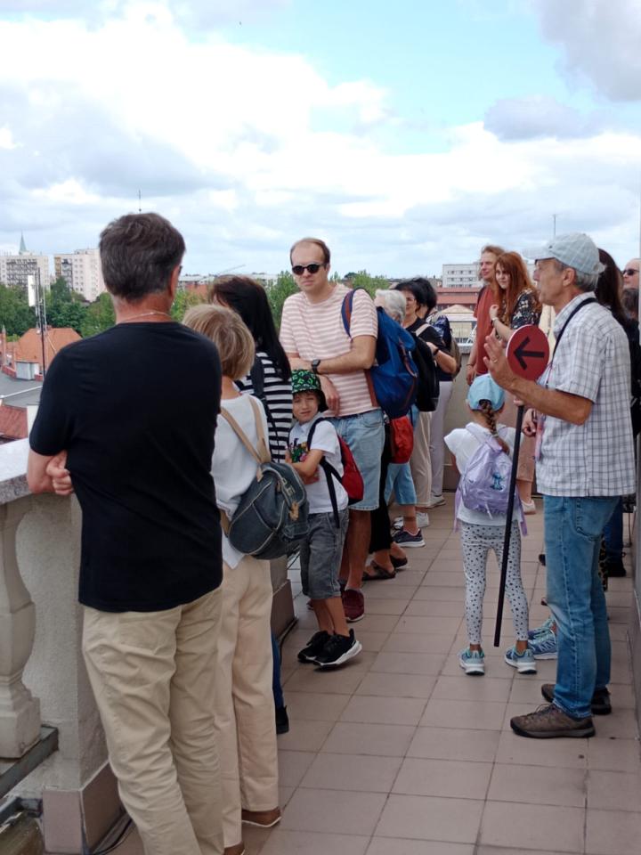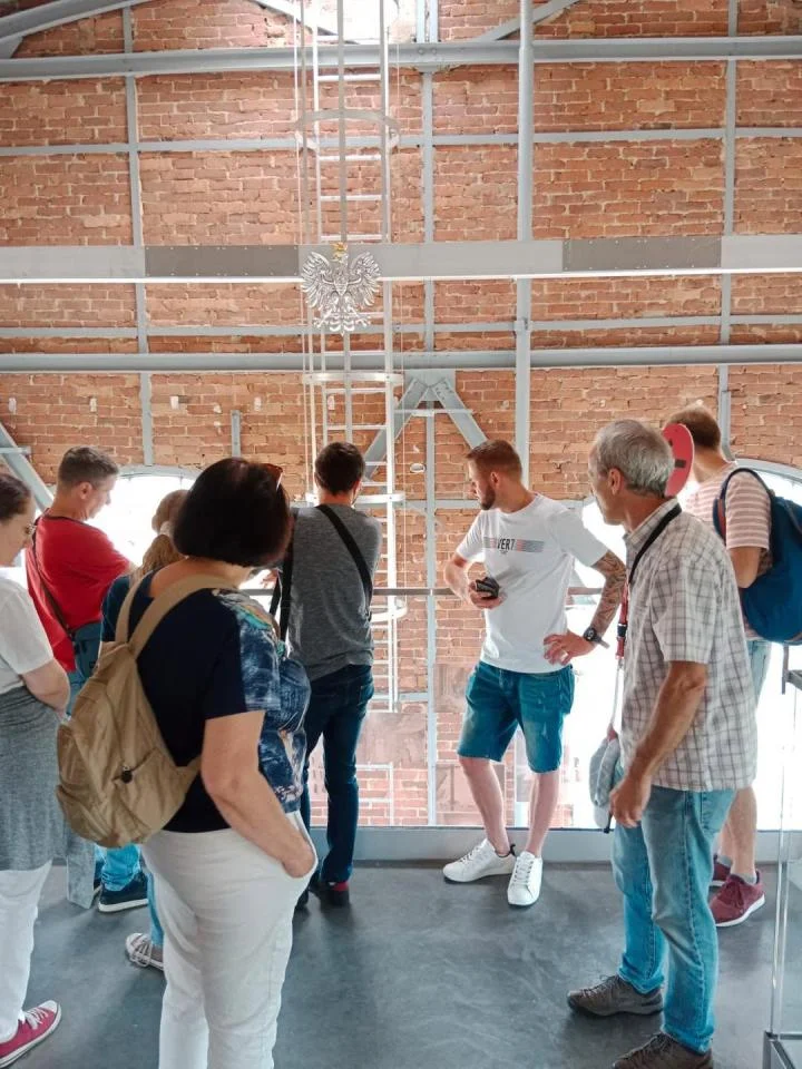 Pierwszym przystankiem był chorzowski ratusz, a dokładnie jego wieża, która na co dzień jest zamknięta dla zwiedzających. Dzięki tej wyjątkowej okazji uczestnicy mogli zajrzeć do wnętrza zabytkowego mechanizmu zegara i podziwiać panoramę centrum Chorzowa z niedostępnego na co dzień punktu widokowego. Dla wielu to właśnie ten moment był najbardziej zaskakujący.