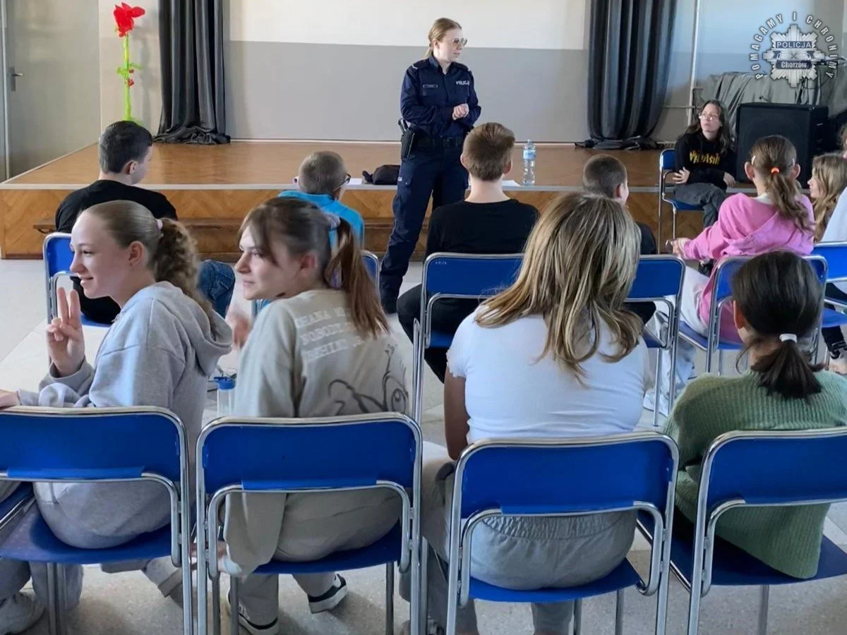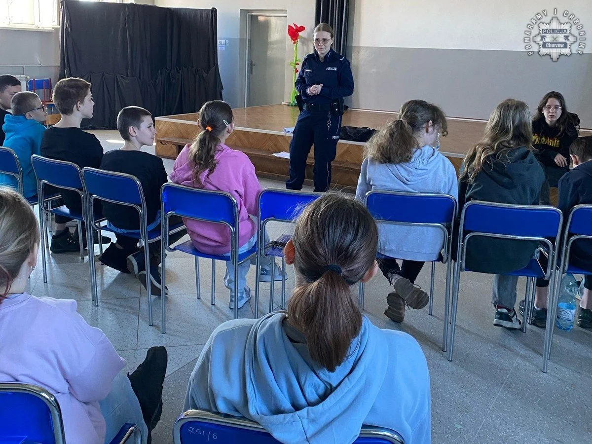 Policjanci chorzowskiej komendy zorganizowali spotkanie profilaktyczne dla uczniów jednej z szkół podstawowych w Chorzowie. W spotkaniu wzięło udział niespełna 150 uczniów. Uczestnicy mieli okazję zgłębić wiedzę na temat zagrożeń w cyberprzestrzeni.