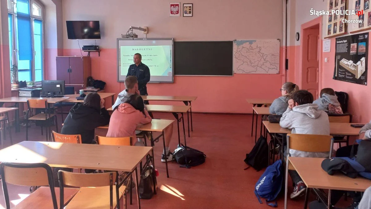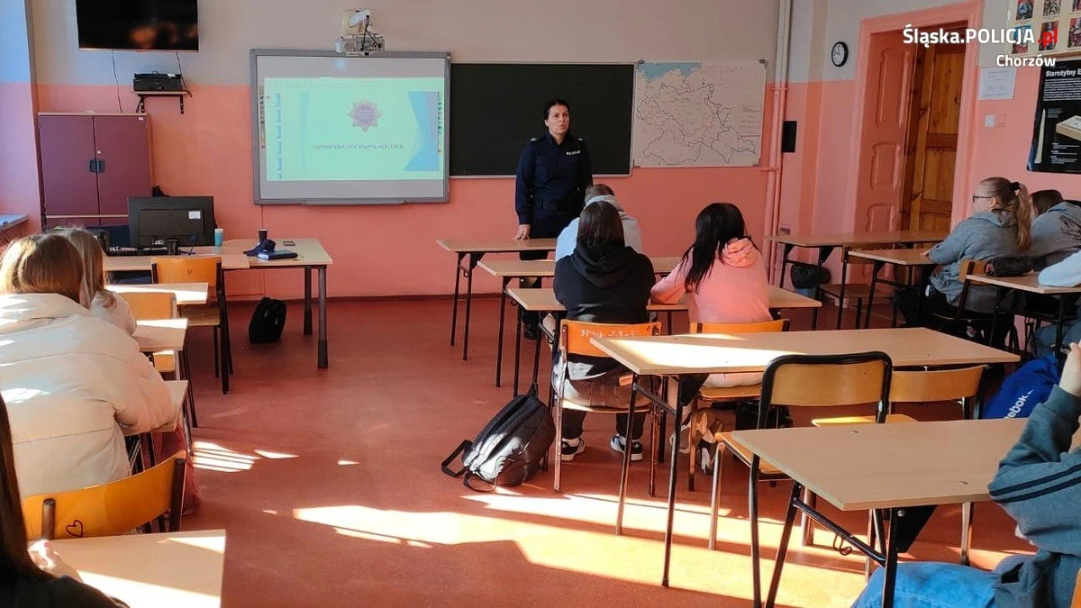 Chorzowska Policja edukuje młodzież o handlu ludźmi i odpowiedzialności karnej