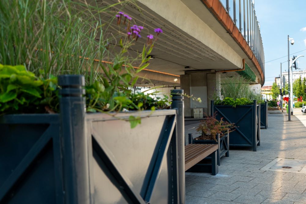 Zakupiono 3 duże oraz 6 małych metalowych donic – zostały one obsadzone krzewami i bylinami. Pomiędzy donicami zamontowano również 3 ławki, które mają umilić mieszkańcom oczekiwanie na przyjazd tramwaju.