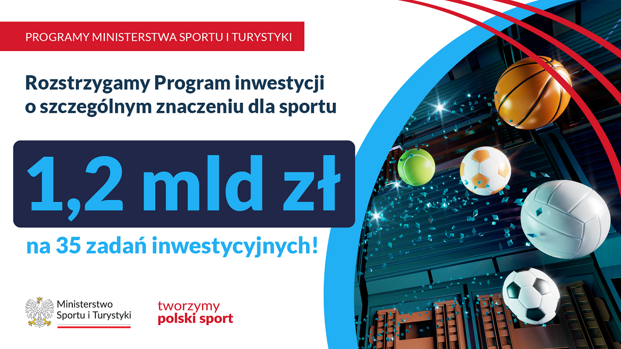 – Dzięki rekordowemu budżetowi Ministerstwa Sportu i Turystyki w wysokości ponad 3,5 mld zł możemy skutecznie wspierać realizację zadań inwestycyjnych służących polskiemu sportowi wyczynowemu. Na inwestycje o szczególnym znaczeniu dla sportu, które pozwolą reprezentantom kadr narodowych przygotowywać się do największych światowych imprez na absolutnie topowym poziomie, przeznaczamy aż 1,2 mld zł. Wsparcie sportowców, którzy występują z orzełkiem na piersi, przysparzając Polakom wielupowodów do dumy, to jeden z naszych priorytetów – powiedział minister sportu i turystyki, Kamil Bortniczuk.
