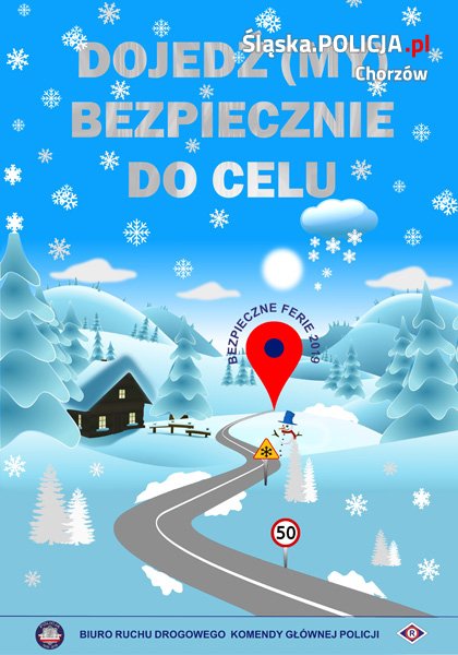 Policjanci, jakco roku, dbają o bezpieczeństwo podróżujących po polskich drogach. Już 11 stycznia 2019 r. rozpoczęły się ogólnopolskie działania kontrolno-prewencyjne pn. „Bezpieczne ferie”, które wspierane są akcją informacyjno-edukacyjną „Dojedź(MY) bezpiecznie do celu”.