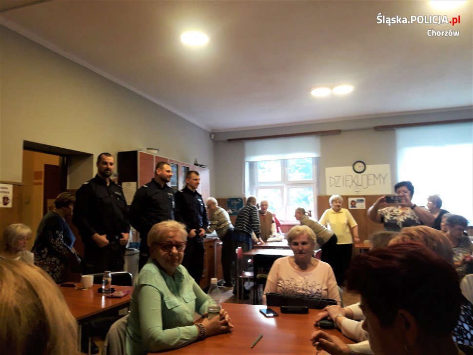 Dzielnicowi z Komisariatu Policji II w Chorzowie spotkali się z seniorami grupy Niezapominajki w Ośrodku Aktywizacji Społecznej przy Pudlerskiej. Policjanci przekazali informacje dotyczące najczęstszych zdarzeń kryminalnych odnotowanych w rejonie komisariatu. Przedstawili seniorom na jakie zagrożenia narażone są osoby starsze przebywające w domu, poruszające się ulicami miasta, korzystające z komunikacji miejskiej czy rozmawiające przez telefon. Mundurowi przypomnieli uczestnikom spotkania o podstawowych zasadach bezpieczeństwa w kontakcie z domokrążcami oraz osobami podającymi się za przedstawicieli rożnych firm i instytucji. Szczególną uwagę poświęcili omówieniu metody działania oraz wykorzystywania legendy na tzw. „wnuczka, policjanta, funkcjonariusza CBŚP” przez sprawców wyłudzających pieniądze. Pokrzywdzeni, którzy padają ofiarą oszustw metodami „na wnuczka”, „na policjanta” i pokrewnymi, często tracą oszczędności całego swojego życia. Uświadamiali, iż każdorazowo należy zgłaszać fakt chociażby usiłowania wyłudzenia pieniędzy według w/w schematu.