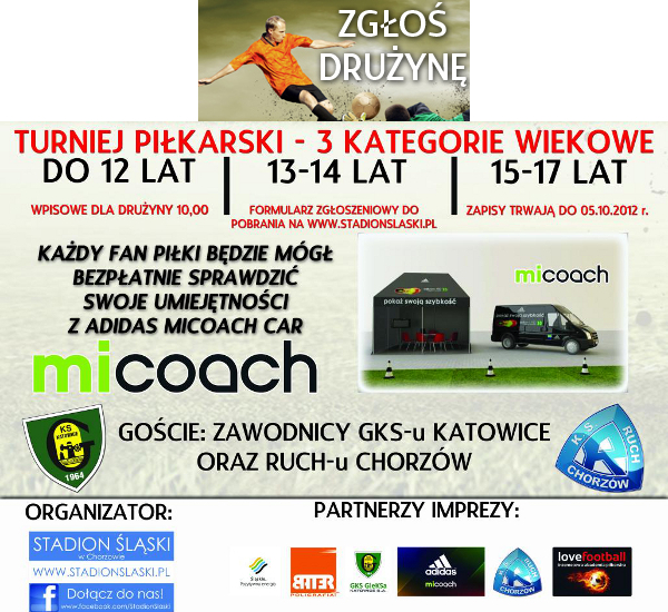 14:15 – 15:00 – PREZENTACJA PIŁKARZY GKS-u KATOWICE I RUCH-u CHORZÓW; PREZENTACJA ADIDAS miCoach CAR