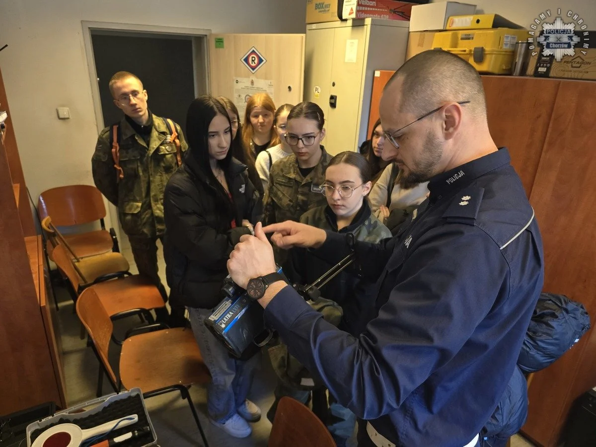 Dzień przedsiębiorczości w chorzowskiej komendzie: młodzież odwiedziła mundurowych