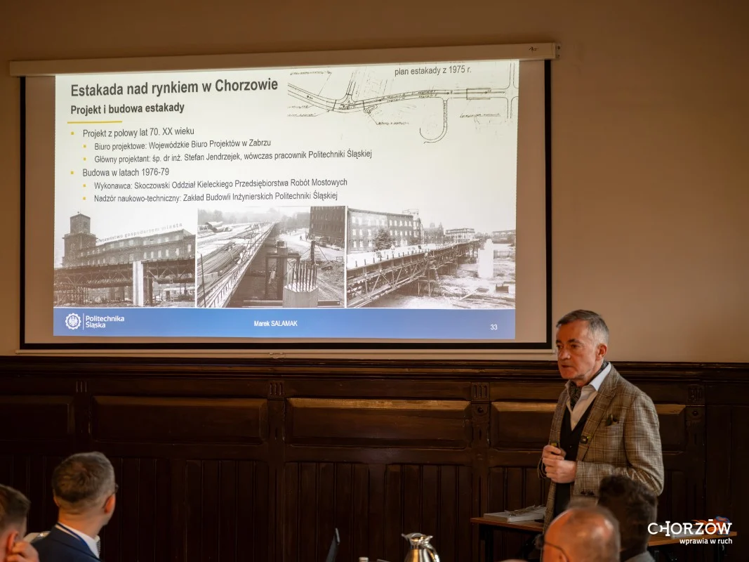 Spotkanie poprzedził wykład prof. Marka Salamaka z Politechniki Śląskiej – uznanego konsultanta i projektanta mostów. Ekspert zwrócił uwagę, że problemy z estakadami i mostami nie są wyłącznie lokalnym zjawiskiem. Dotykają one nie tylko Chorzowa czy innych polskich miast, ale także wielu krajów w Europie i na świecie.