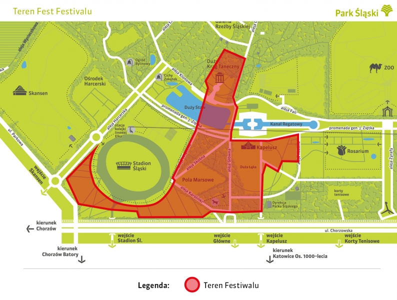 Teren pod festiwal przekazaliśmy już organizatorowi, który buduje całą infrastrukturę. Czekamy na koncerty i jednocześnie informujemy, że przy tej okazji mogą się pojawić utrudnienia komunikacyjne – prosimy o wyrozumiałość i uwzględnienie tego podczas planów wizyty w parku. Szczególnie w okolicach Pól Marsowych, Dużej Łąki, Dużego Kręgu Tanecznego i na al. Karolinki.  – czytamy na stronie internetowej Parku Śląskiego – Dodajmy, że w dn. 22-24 sierpnia nieprzejezdne będą aleje Główna, Karolinki, Skośna, promenada Gen J. Ziętka na odcinku od połowy Dużego Stawu do alei Głównej przez odcinek przy HW “Kapelusz” po aleję Różaną. W tych dniach, część miejsc parkingowych wykorzystywanych będzie przez gości festiwalu. Z pozostałych będzie można skorzystać, natomiast przy pełnym ich obłożeniu wjazdy do parku zostaną zamknięte. W związku z powyższymi utrudnieniami zachęcamy do korzystania z komunikacji miejskiej.