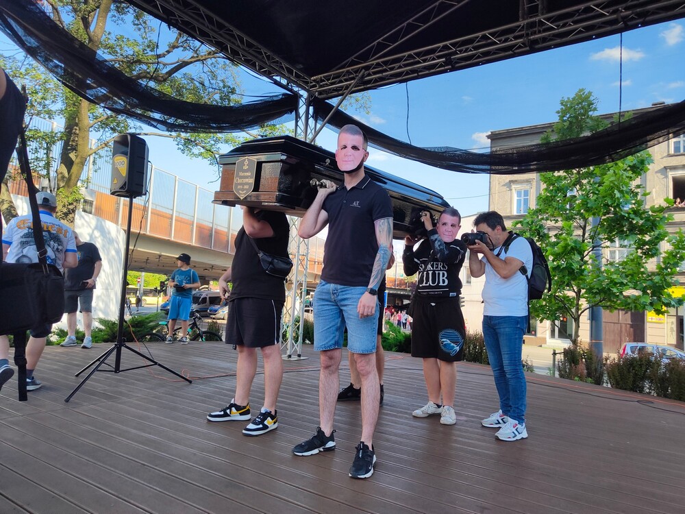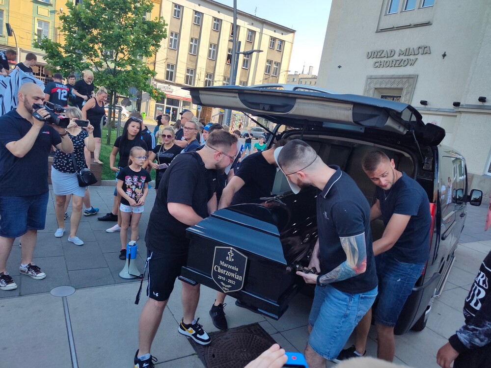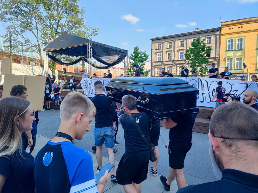 Charakterystycznym elementem protestu był karawan z trumną, w której symbolicznie spoczywały “nadzieje chorzowian”. Również kibice przyszli ubrani na czarno na znak żałoby.