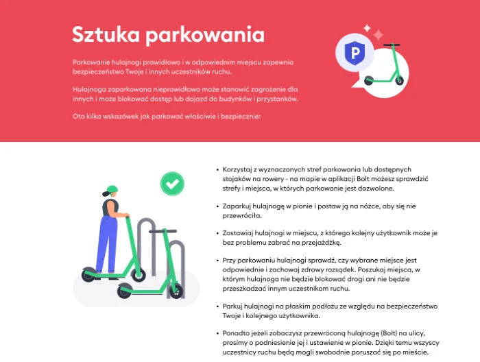 Korzystanie z hulajnóg Bolt jest niezwykle proste, jednak zalecane jest stosowanie się do ogólnych zasad bezpiecznej i odpowiedzialnej jazdy: