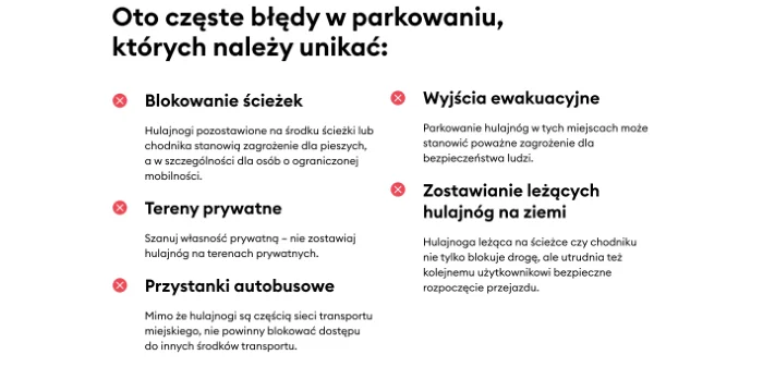 - Parkowanie jest równie ważnym elementem odpowiedzialnego korzystania z miejskich hulajnóg i zostało uregulowane w skali kraju w maju 2021. Zasady te opisane są również w aplikacji: