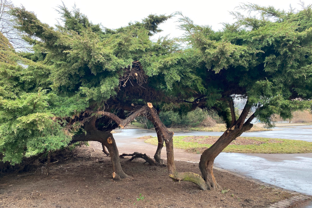Warto przy tym dodać, że jałowce są jednymi z pierwszych świadków historii tego założenia parkowego – Przystań uruchomiono w 1956 roku, a wraz z budynkiem oddano do użytku Kanał I. Otoczenie Dużego Stawu zagospodarowywano w drugiej połowie lat 50., aż do powstania Kanału Regatowego z Wyspą pod Żaglami w 1960 roku.