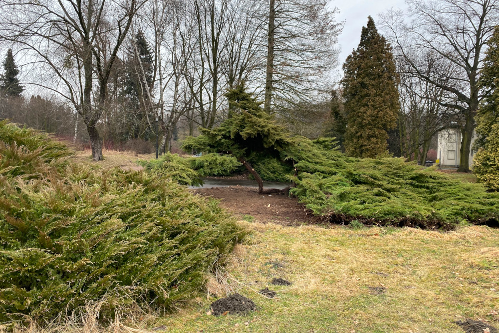 Jednak sytuacja, którą zastali spacerowicze w ubiegłym tygodniu nie napawa optymizmem. Okazuje się, ze iglaki dosięgła piła spalinowa i to w skali, która poraża. O pracach ogrodniczych, bardzo mocno ingerujących w 60-letnie jałowce poinformowali członkowie Stowarzyszenia Nasz Park na Facebooku.