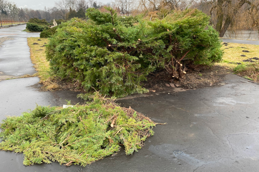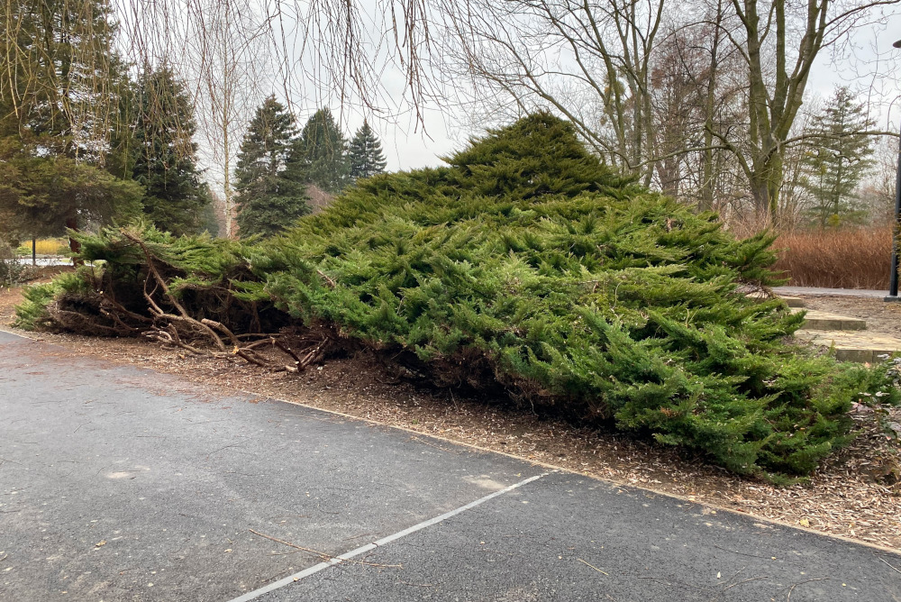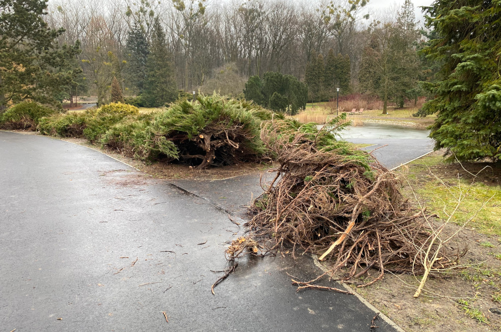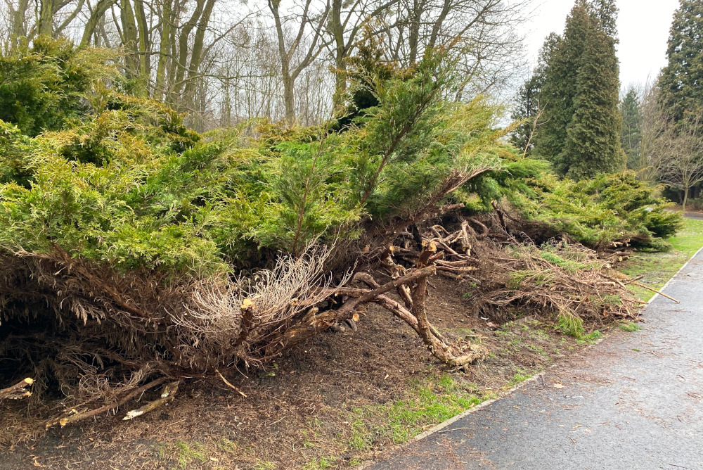 Park Śląski na potwierdzenie swojego stanowiska przekazał zdjęcia dokumentujące stan iglaków, na których można zobaczyć stopień zamarcia w środku krzewów i wyłamane gałęzie.