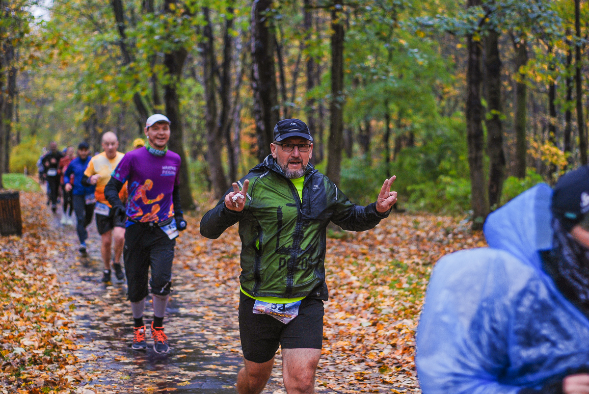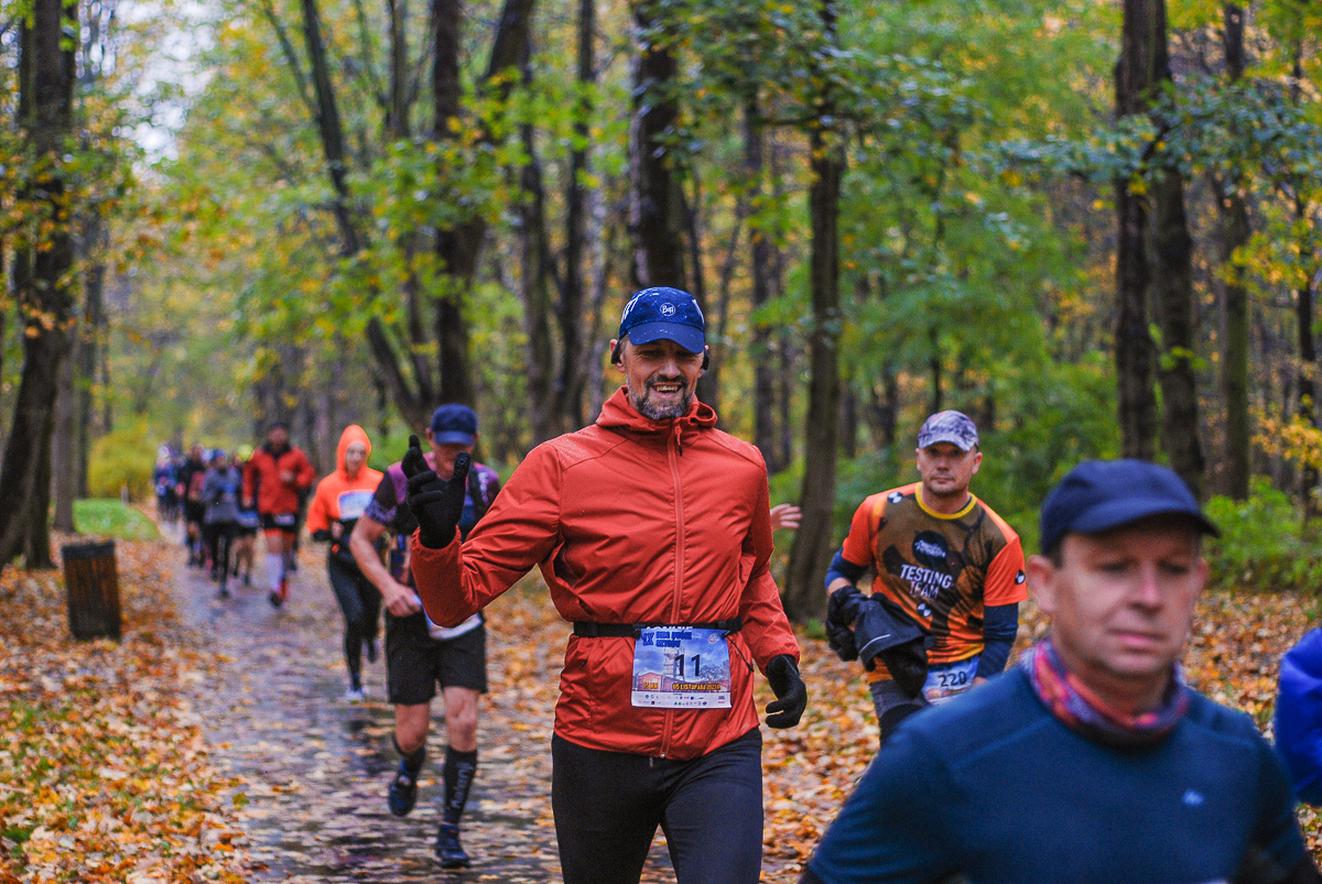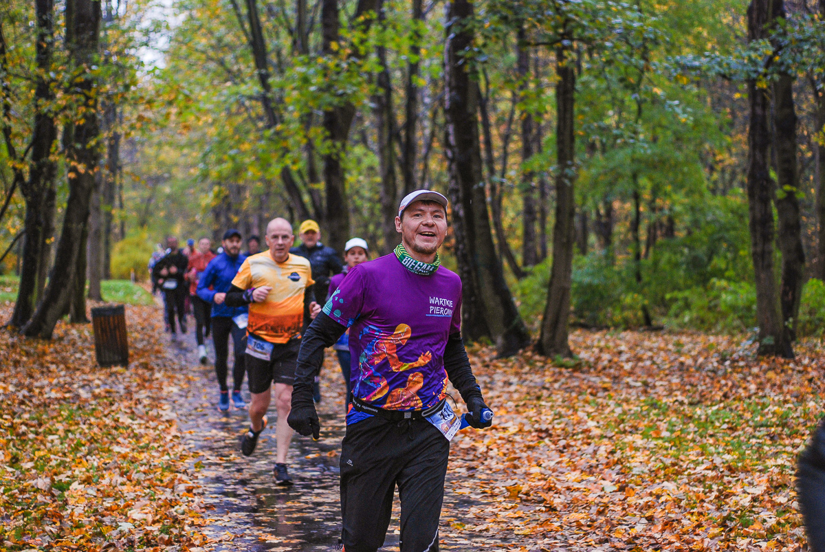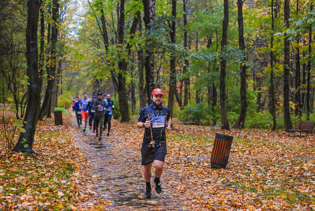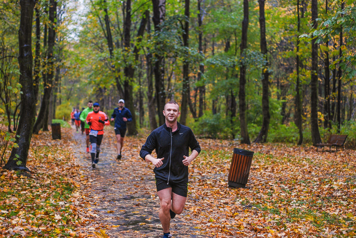 Najlepsi pokonali trasę w dużo mniej niż godzinę. Na terenie Parku, w okolicy Żyrafy, gdzie czekaliśmy z naszym aparatem, byli już po około kwadransie. Chwilę po nich, pojawiła się główna grupa biegaczy.