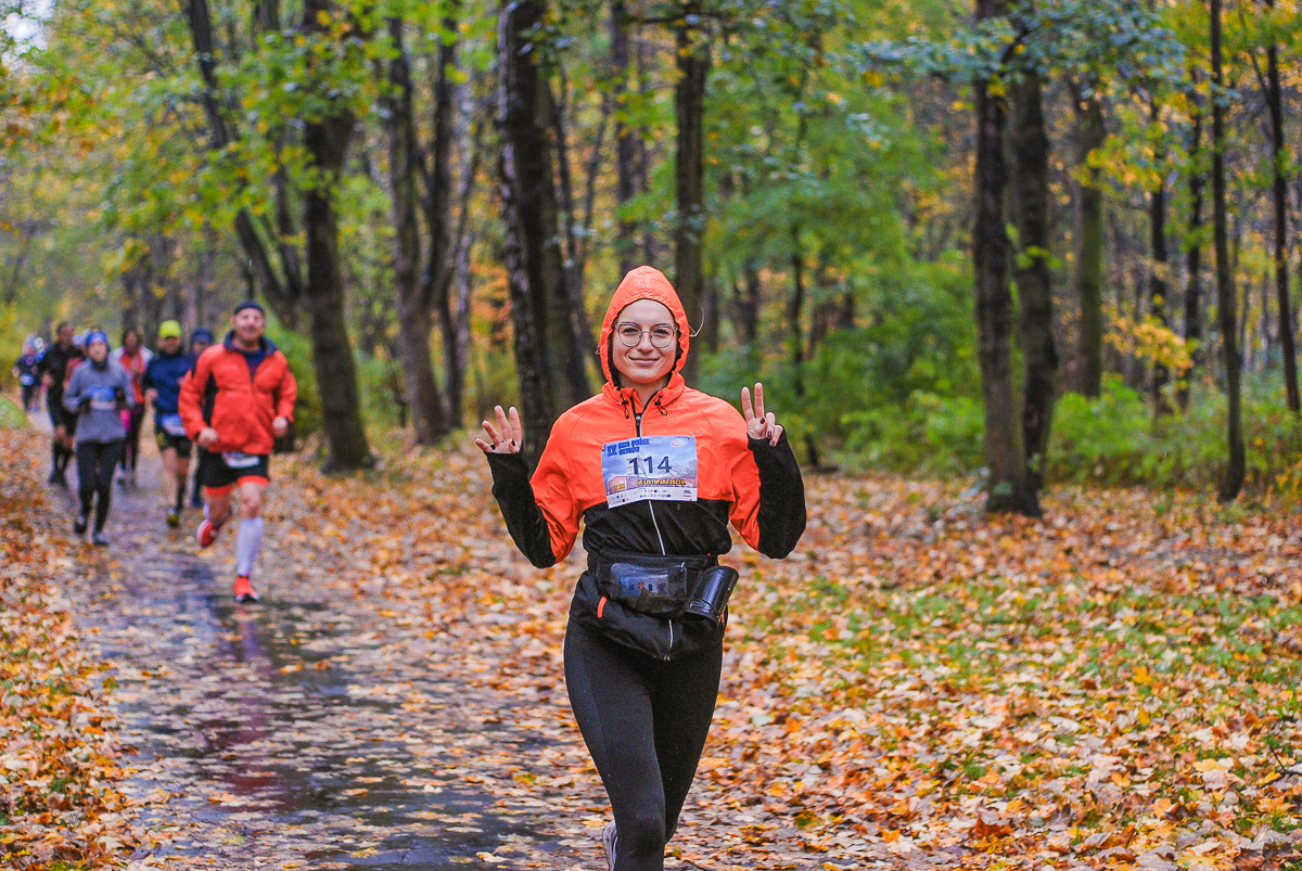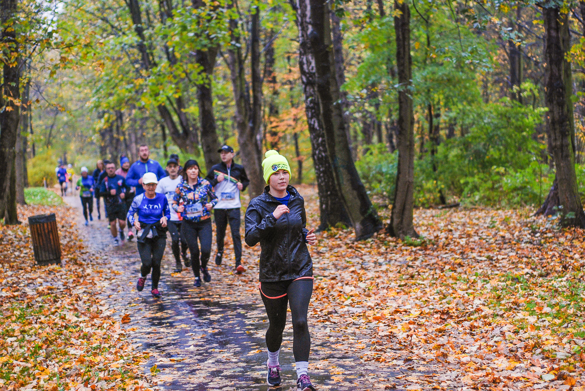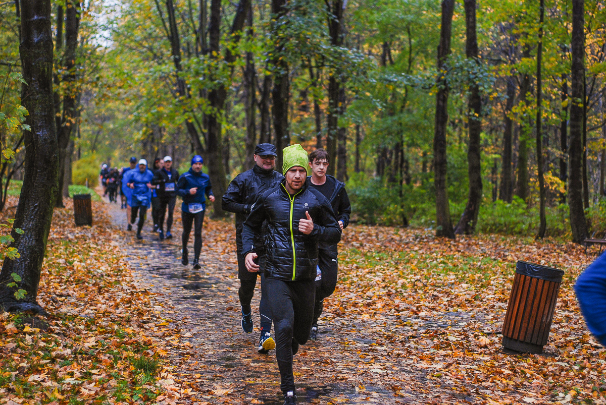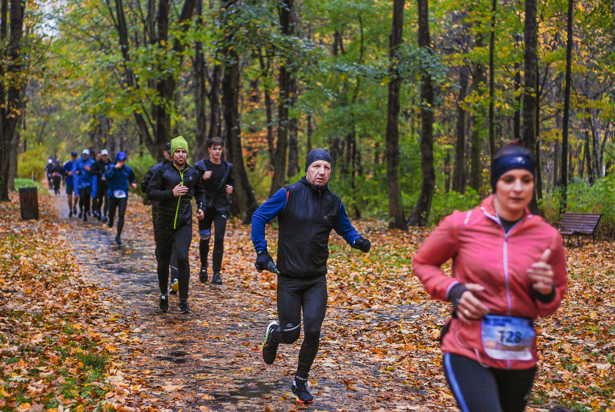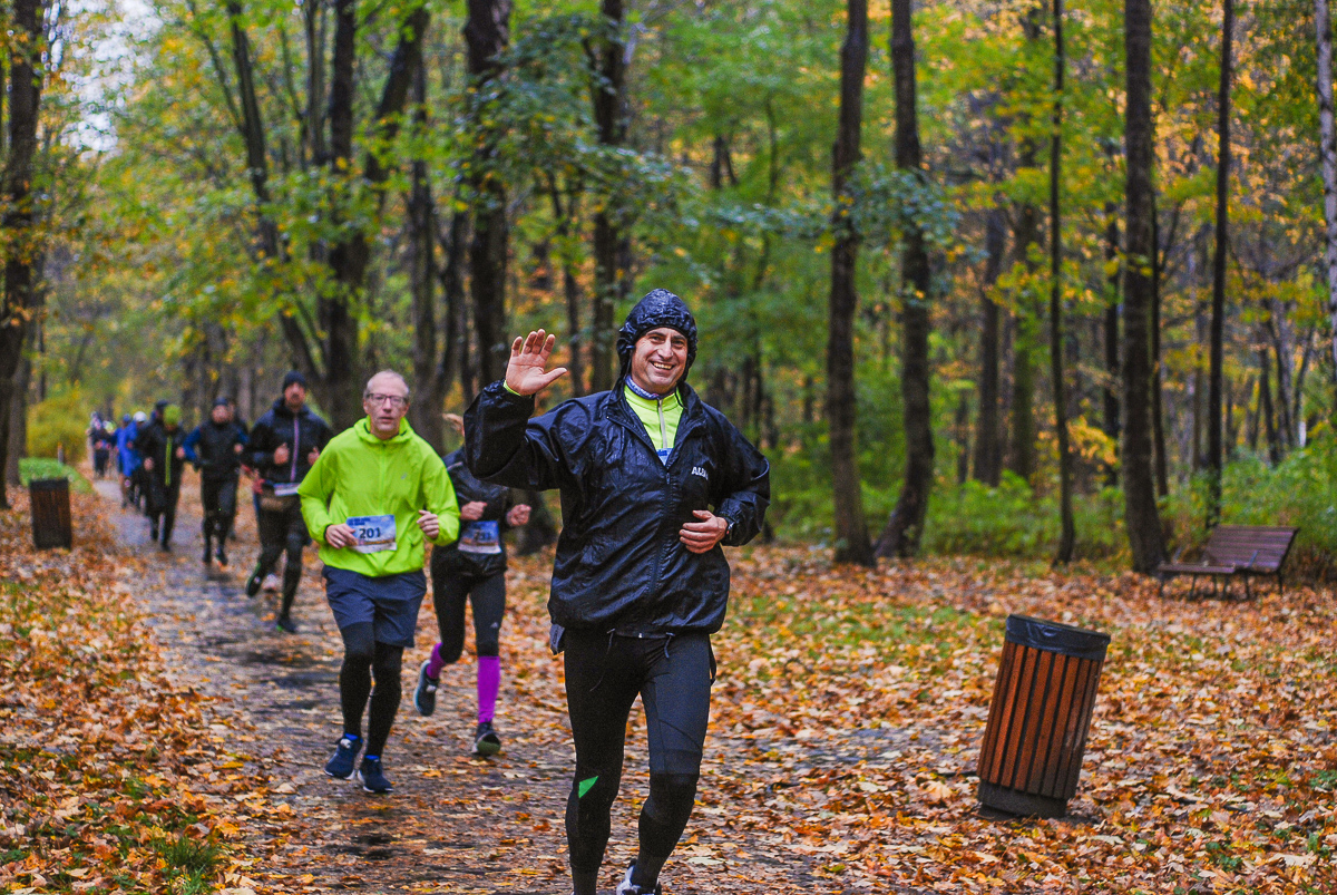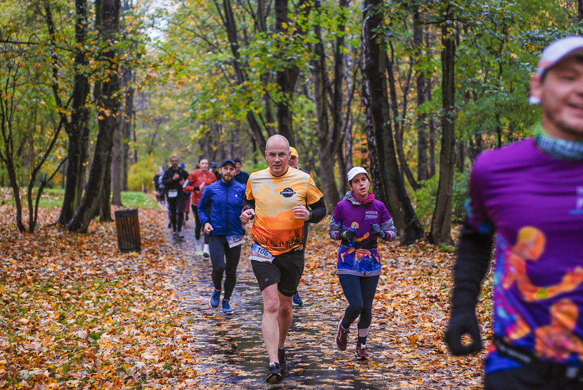 Najlepsi pokonali trasę w dużo mniej niż godzinę. Na terenie Parku, w okolicy Żyrafy, gdzie czekaliśmy z naszym aparatem, byli już po około kwadransie. Chwilę po nich, pojawiła się główna grupa biegaczy.