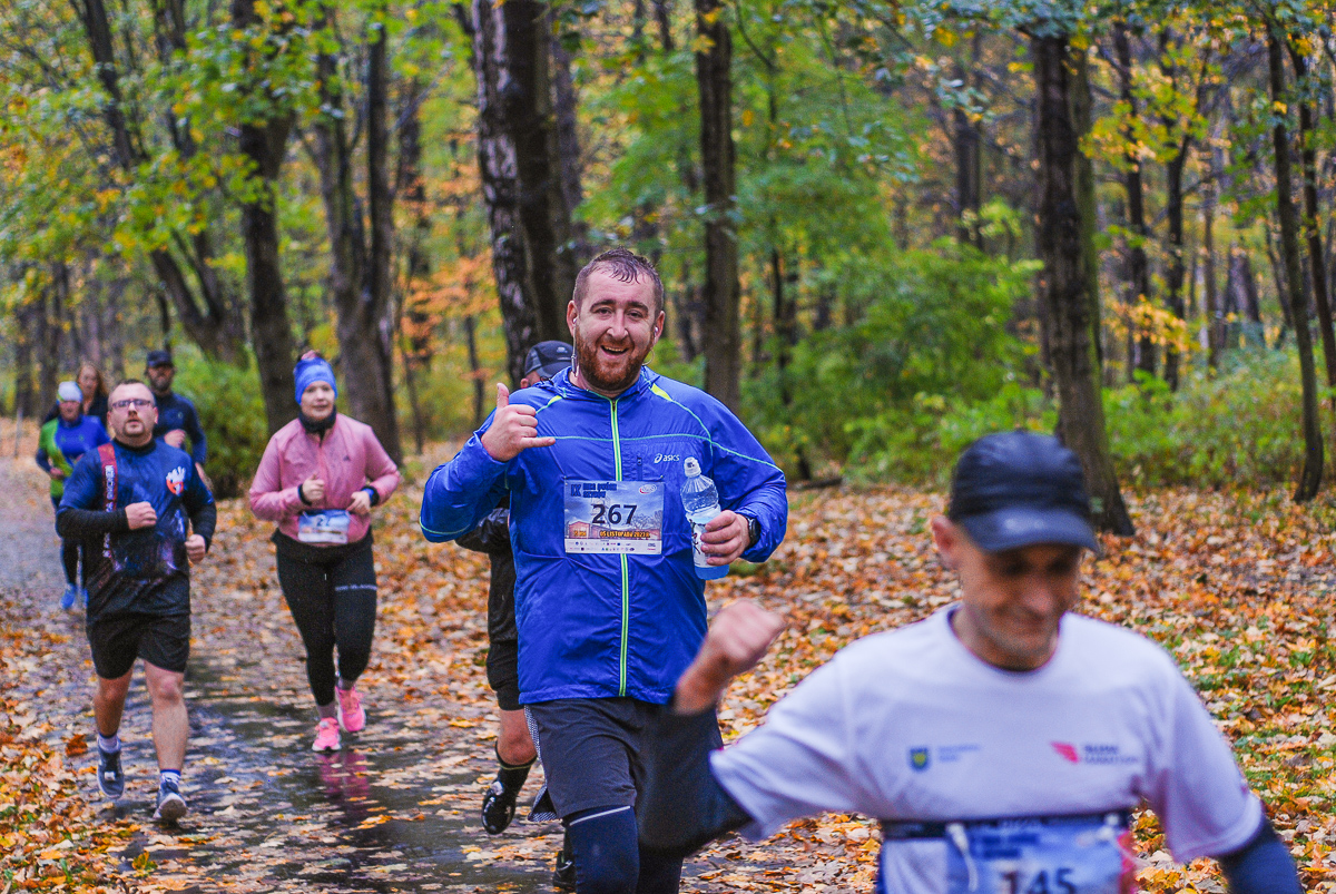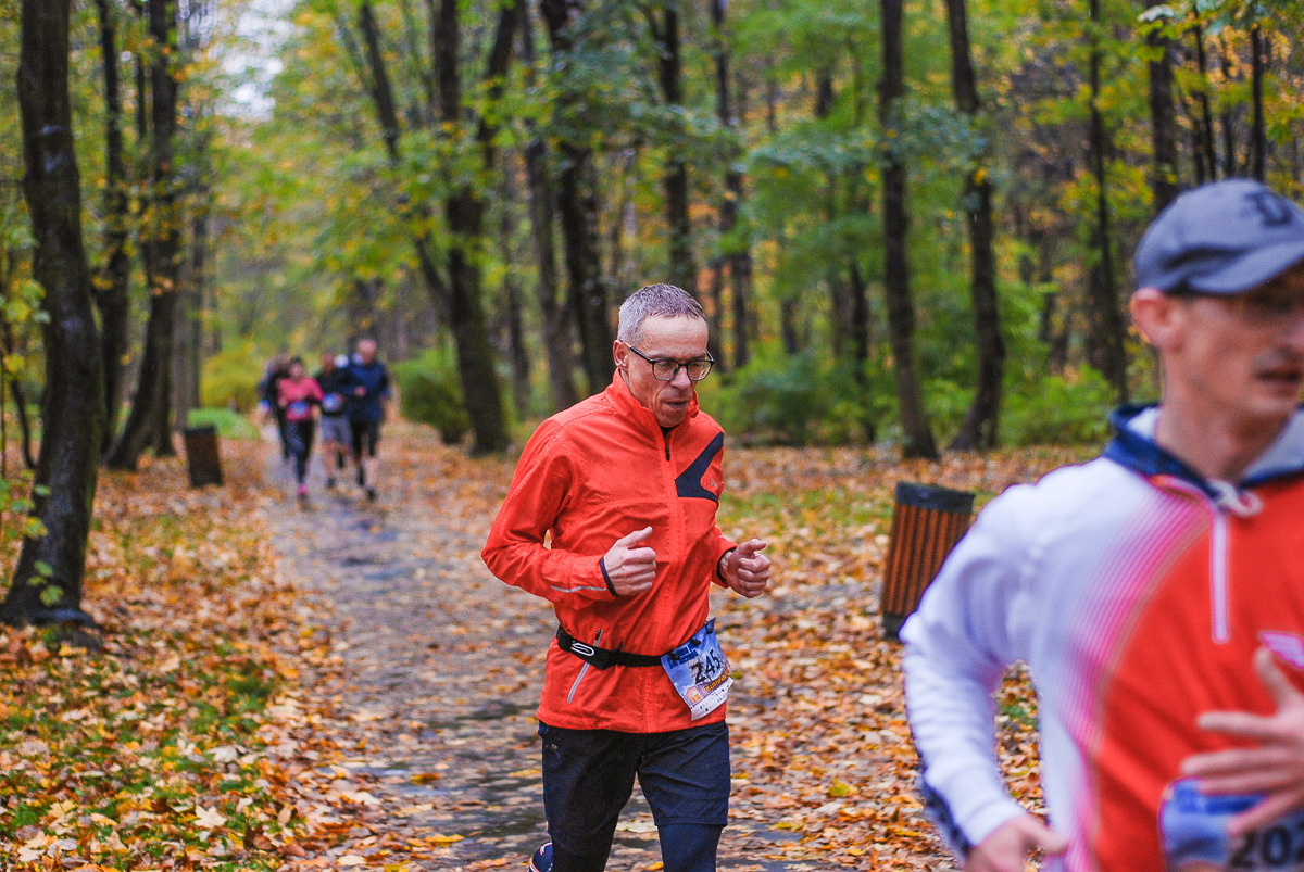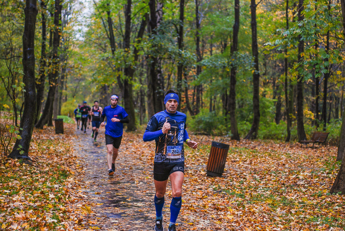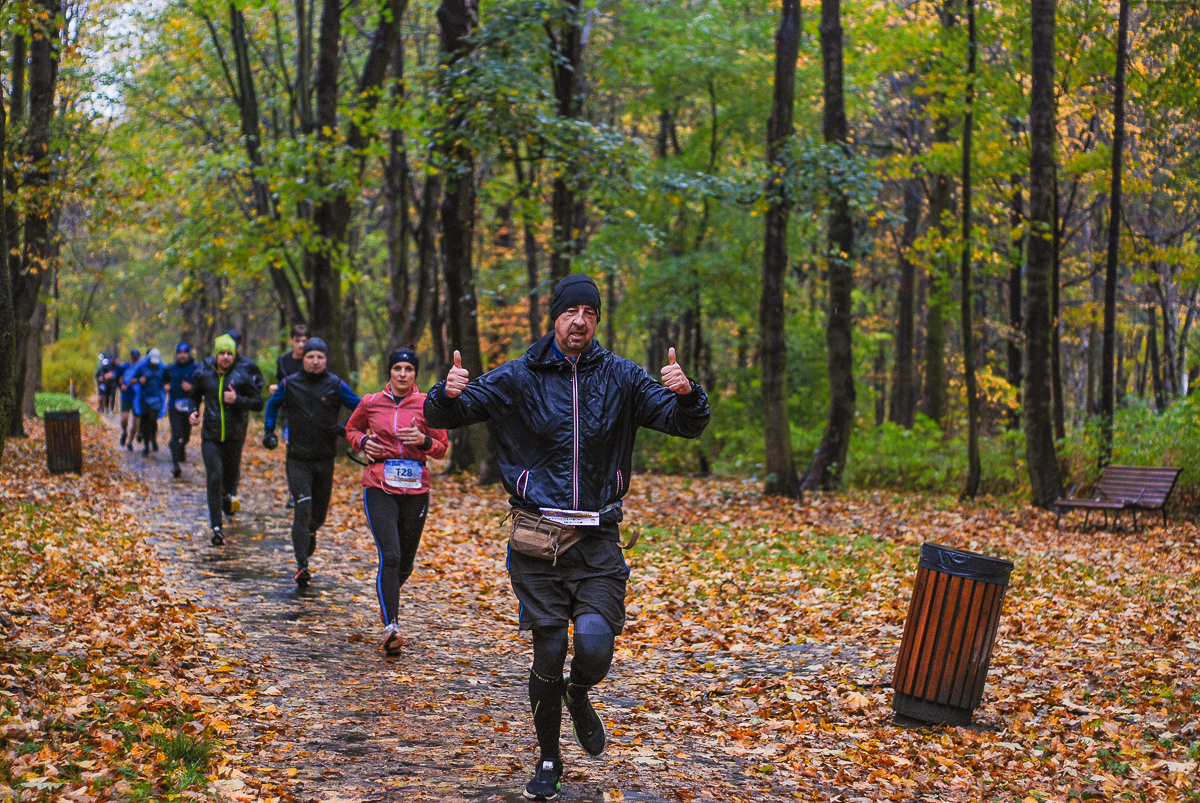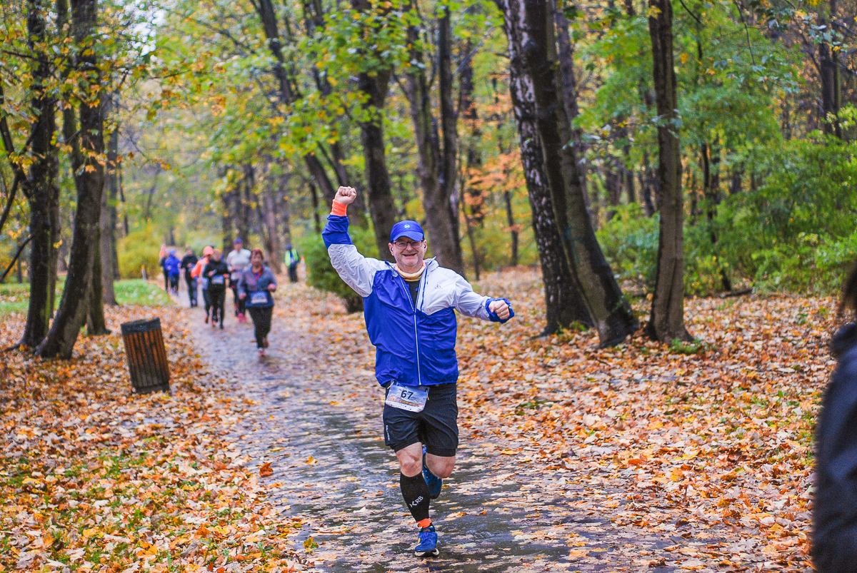 Najlepsi pokonali trasę w dużo mniej niż godzinę. Na terenie Parku, w okolicy Żyrafy, gdzie czekaliśmy z naszym aparatem, byli już po około kwadransie. Chwilę po nich, pojawiła się główna grupa biegaczy.