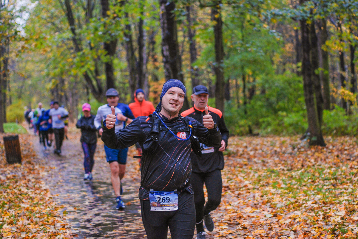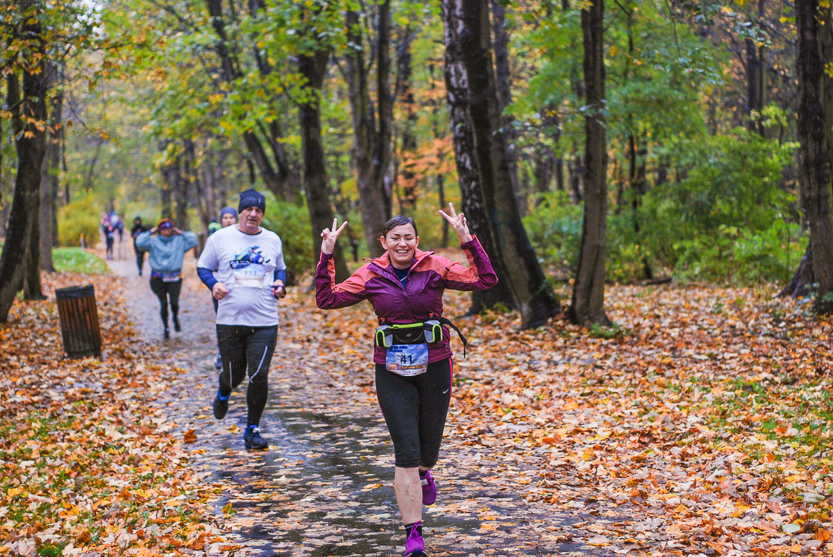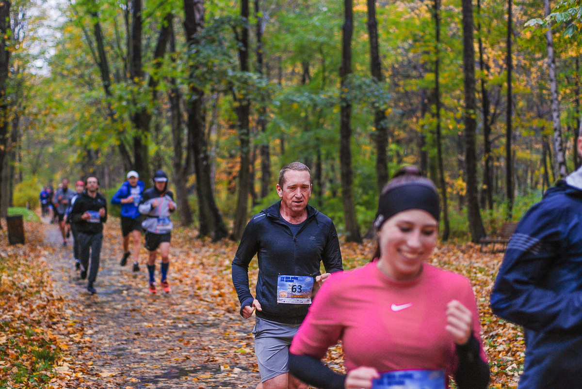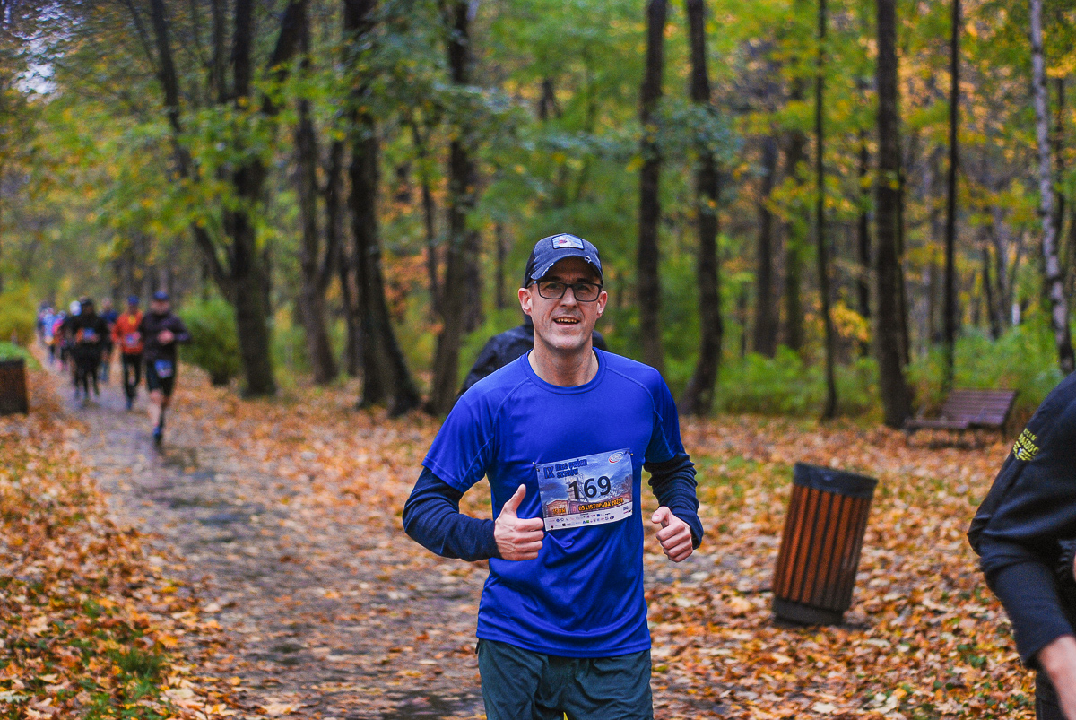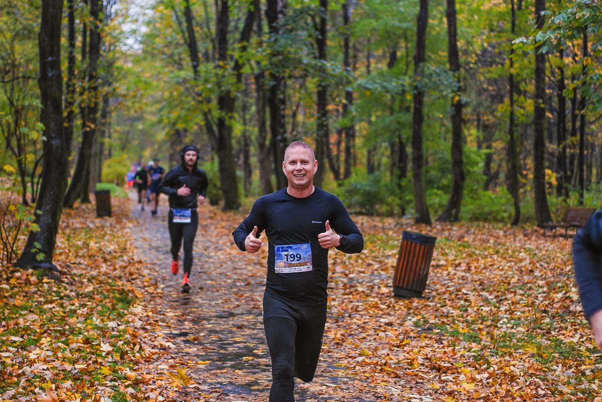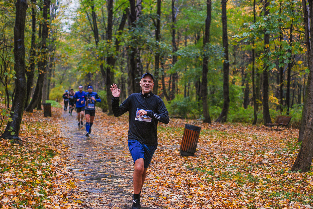 Najlepsi pokonali trasę w dużo mniej niż godzinę. Na terenie Parku, w okolicy Żyrafy, gdzie czekaliśmy z naszym aparatem, byli już po około kwadransie. Chwilę po nich, pojawiła się główna grupa biegaczy.
