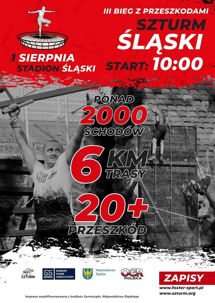 Już w przyszłą niedzielę na Stadionie Śląskim rusza kolejny bieg z przeszkodami, czyli trzecia edycja Szturmu Śląskiego! Na uczestników czeka m.in. 6 km trasy, 20 przeszkód i ponad 2000 schodów! Przewidziane są również atrakcje dla najmłodszych!