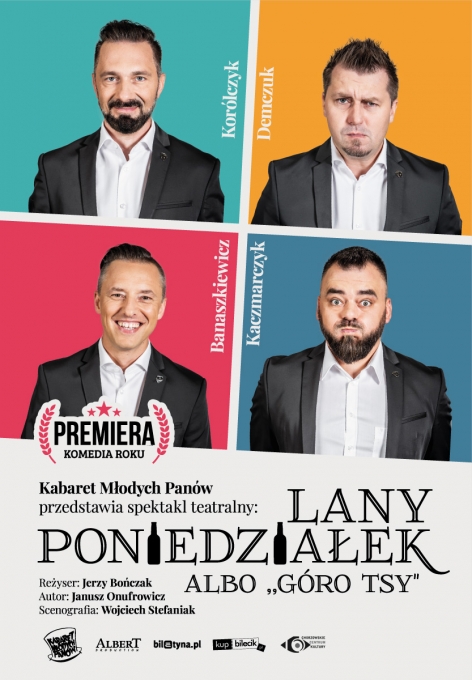 SPEKTAKL ODWOŁANY Z POWODU CHOROBY AKTORA-KASA ZWRACA PIENIĄDZE ZA BILETY -KABARET MŁODYCH PANÓW PRZEDSTAWI SPEKTAKL PT. LANY PONIEDZIAŁEK, ALBO “GÓRO TSY” – REŻYSERIA JERZY BOŃCZAK