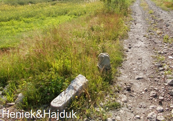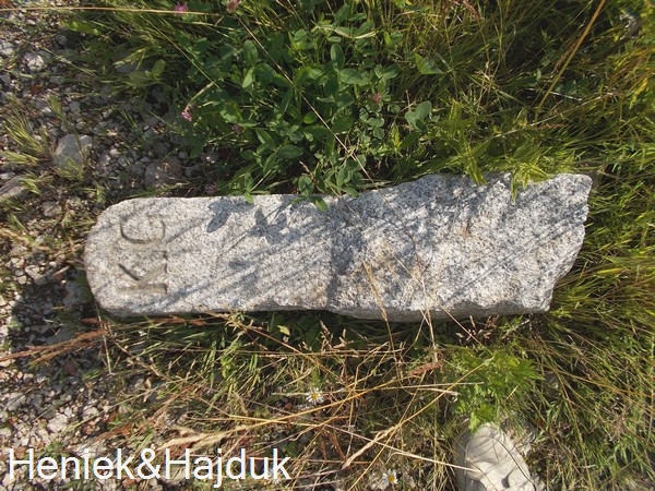 H: Okazało się, że wykonywane były z różnych materiałów: piaskowca, granitu, kilka jakby z betonu lub kamienia sztucznego. Jedne mają tylko inicjały KG na boku inne oprócz inicjałów także kuple. Z tym że czasem inicjały były wykute na ich szczycie i te mogły oznaczać zmianę kierunku granicy pola, co w jednym przypadku by się zgadzało.
