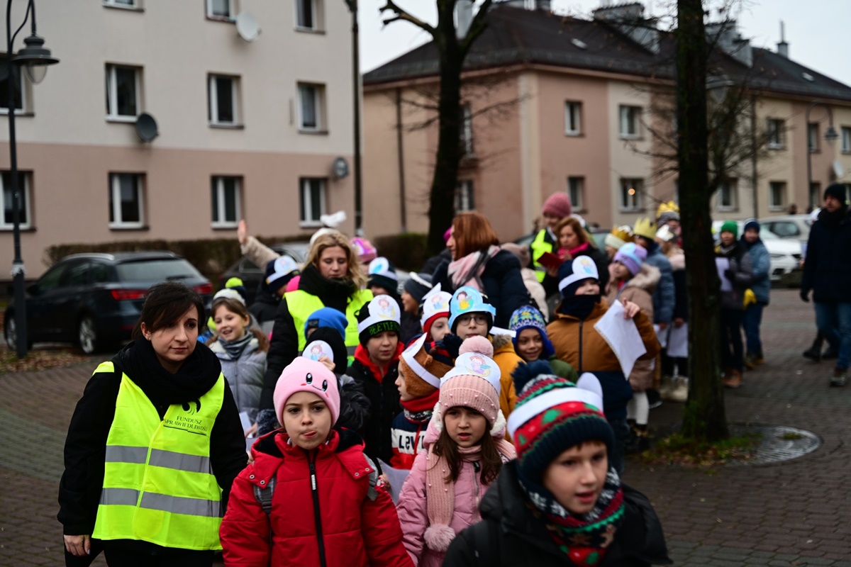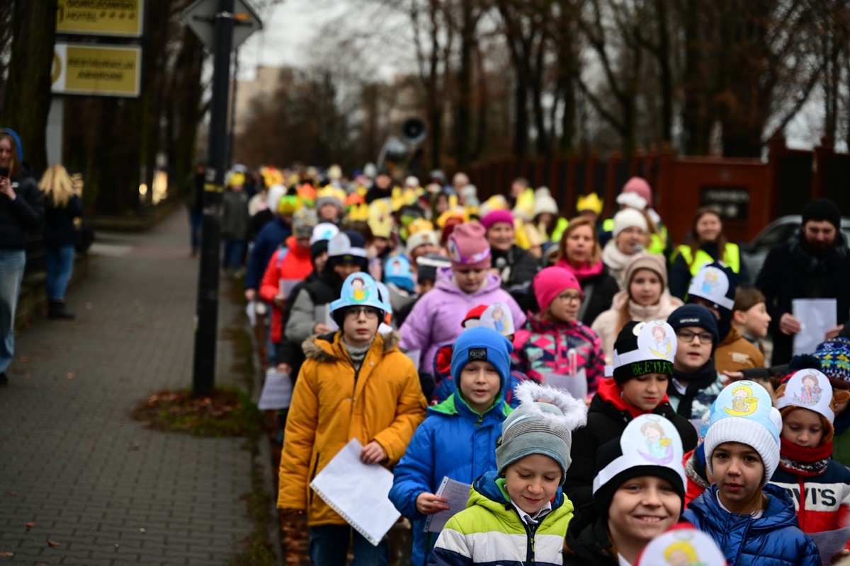 Kolędnicy z SP nr 12 przeszli ulicą Stefana Batorego w Chorzowie