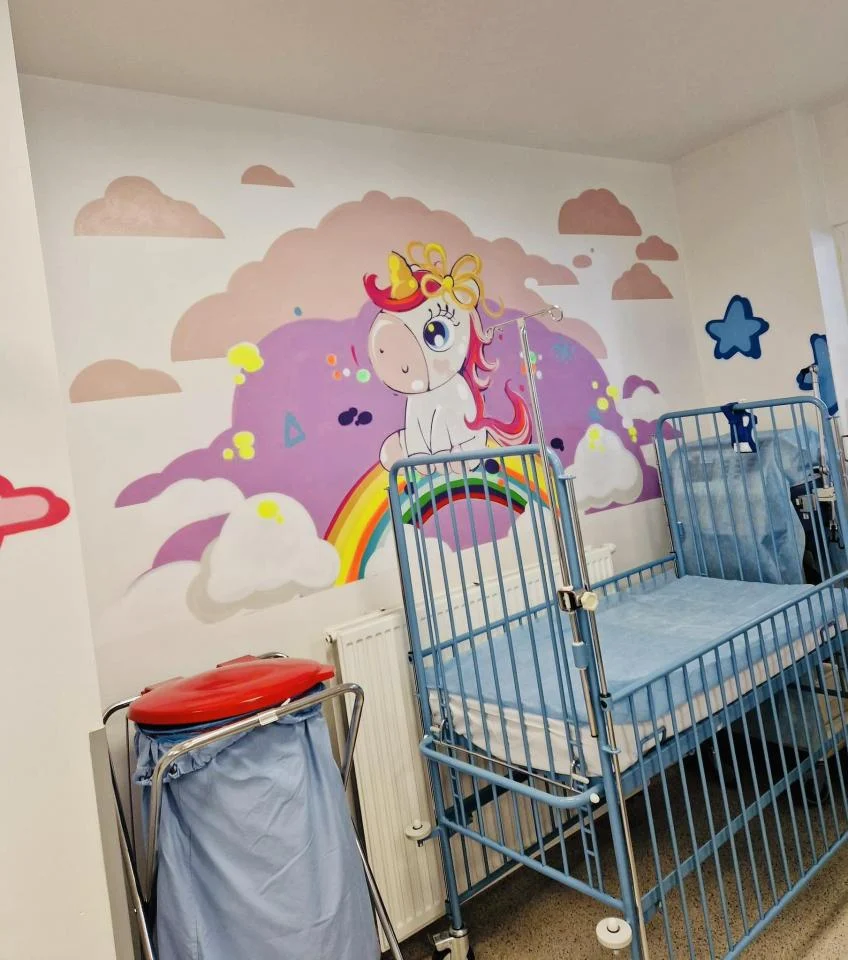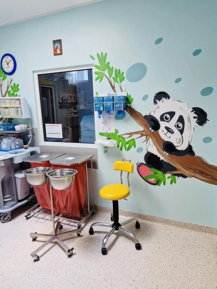 Malowidła, które teraz ozdabiają ściany Oddziału, powstały dzięki bezinteresownej pracy firmy Hello Art, która poświęciła swój czas i umiejętności, aby przekształcić przestrzeń w kolorową oazę. Dodatkowo, firma MAK Sp. z o. o. z Piekar Śląskich oraz anonimowy darczyńca wsparli projekt, zakupując niezbędne materiały, takie jak farby.