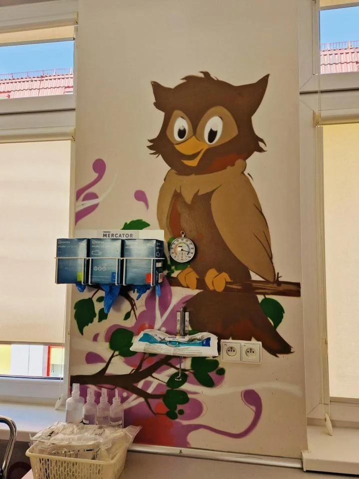 W Zespole Szpitali Miejskich w Chorzowie pojawiła się nowa, kolorowa przestrzeń, która z pewnością wywołuje uśmiech na twarzach małych pacjentów. Oddział Anestezjologii i Intensywnej Terapii dla Dzieci został ozdobiony pięknymi malowidłami przedstawiającymi różne zwierzęta, takie jak sowa, jednorożec, żyrafa, struś i królik.