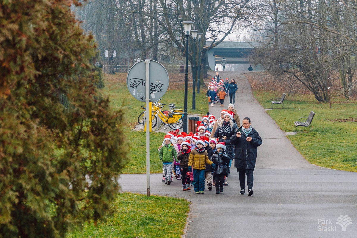 5 grudnia br. spacerujący po Parku Śląskim mogli być świadkami niezwykłego korowodu dzieci z okolicznych szkół podstawowych i przedszkoli, które zmierzały na spotkanie ze Świętym Mikołajem, który przebywa w swoim domku na placu przy rzeźbie Żyrafy. Na wydarzeniu pojawiło się ponad 600 dzieci, które odwiedziły brodatego gościa parku.