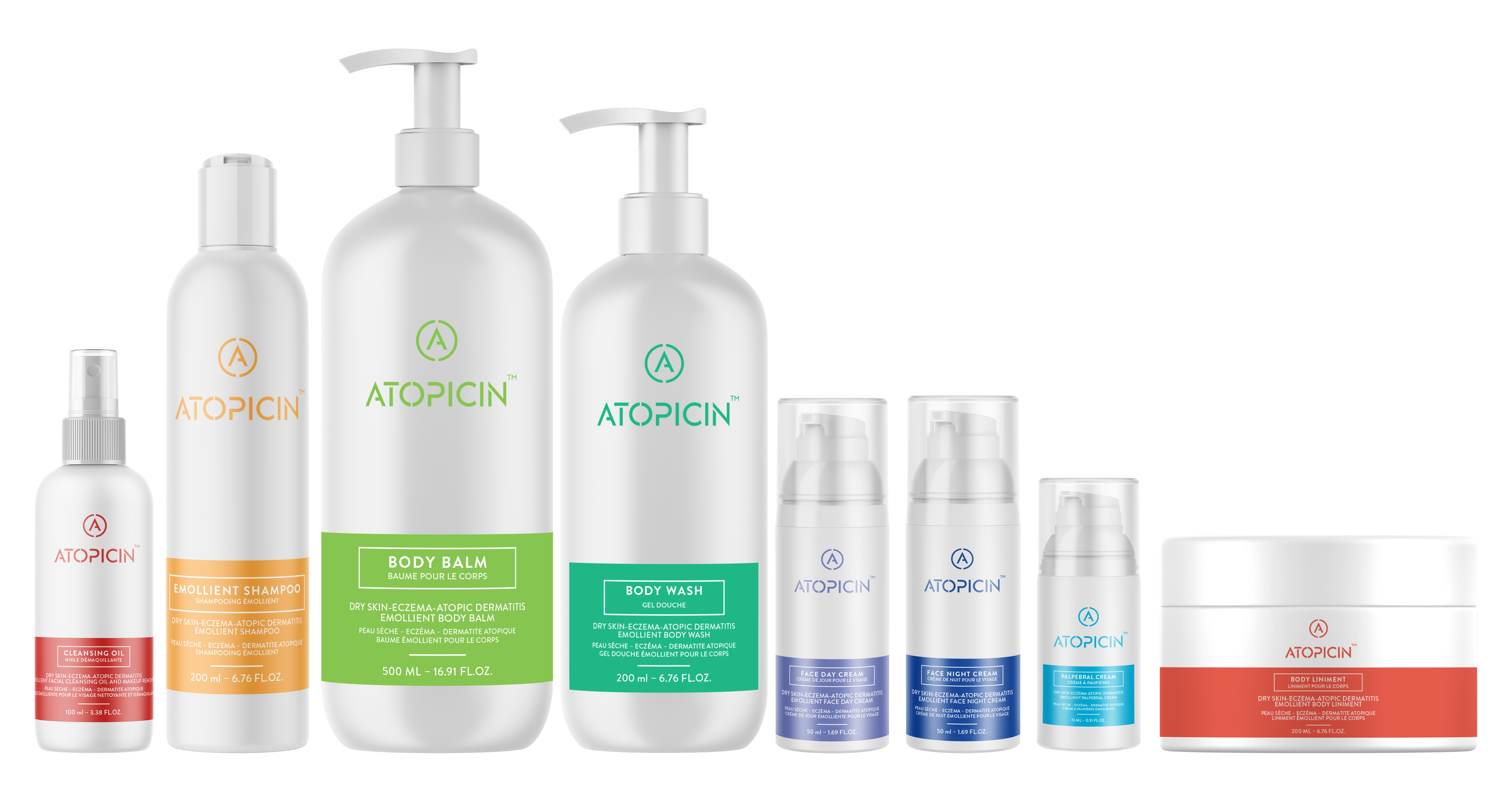 Seria Atopicin to zestaw 8 dermokosmetyków: