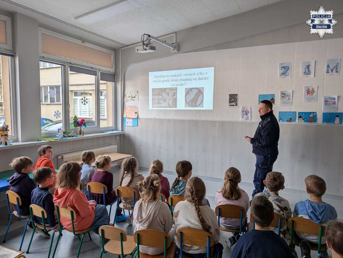 W trosce o bezpieczeństwo najmłodszych chorzowscy policjanci regularnie prowadzą działania profilaktyczne w placówkach oświatowych. Spotkania z uczniami to stały element pracy dzielnicowych, szczególnie w okresie zimowym. W minionym tygodniu mundurowi odwiedzili szkoły podstawowe, by przypomnieć dzieciom najważniejsze zasady bezpieczeństwa.
