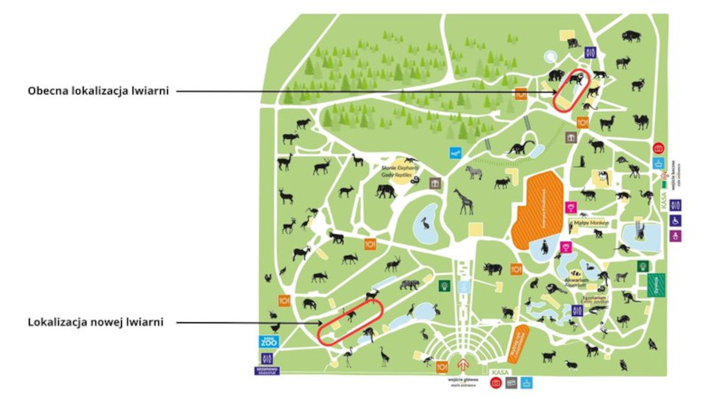 Wiekowy obiekt nie nadaje się do przebudowy – pojawiła się zatem potrzeba budowy nowej lwiarni, spełniającej wymagania związane z rozrodem zwierząt. Pod koniec 2022 roku udało się opracować dokumentację projektową, a w ostatnich dniach pozyskano niezbędne do realizacji inwestycji środki finansowe. Obecna lwiarnia wraz z wybiegiem zostanie zmodernizowana i dostosowana do hodowli mniejszych kotów drapieżnych. Nowy budynek znajdzie się również w zupełnie innym miejscu – w miejscu obecnych wybiegów strusi i kobów liczi, tuż obok ekspozycji tygrysów.