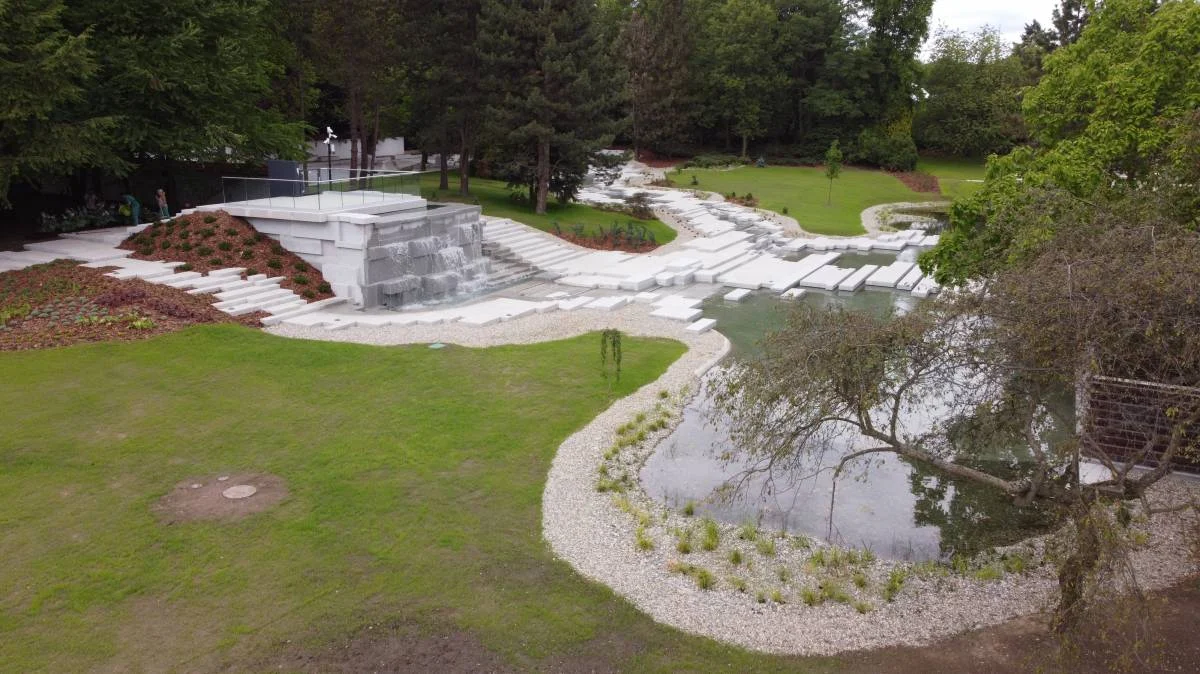 Powstał na obszarze 1,2 ha. Głównym elementem ogrody jest układ wodny. Główną częścią jest dwupoziomowy zbiornik ze strumieniem, wodospadem i przeszklonym tarasem, z którego można oglądać całość realizacji. Przez nieckę z wodą poprowadzony został pomost z betonowych płyt, które sprawiają wrażenie unoszących się na wodzie.
