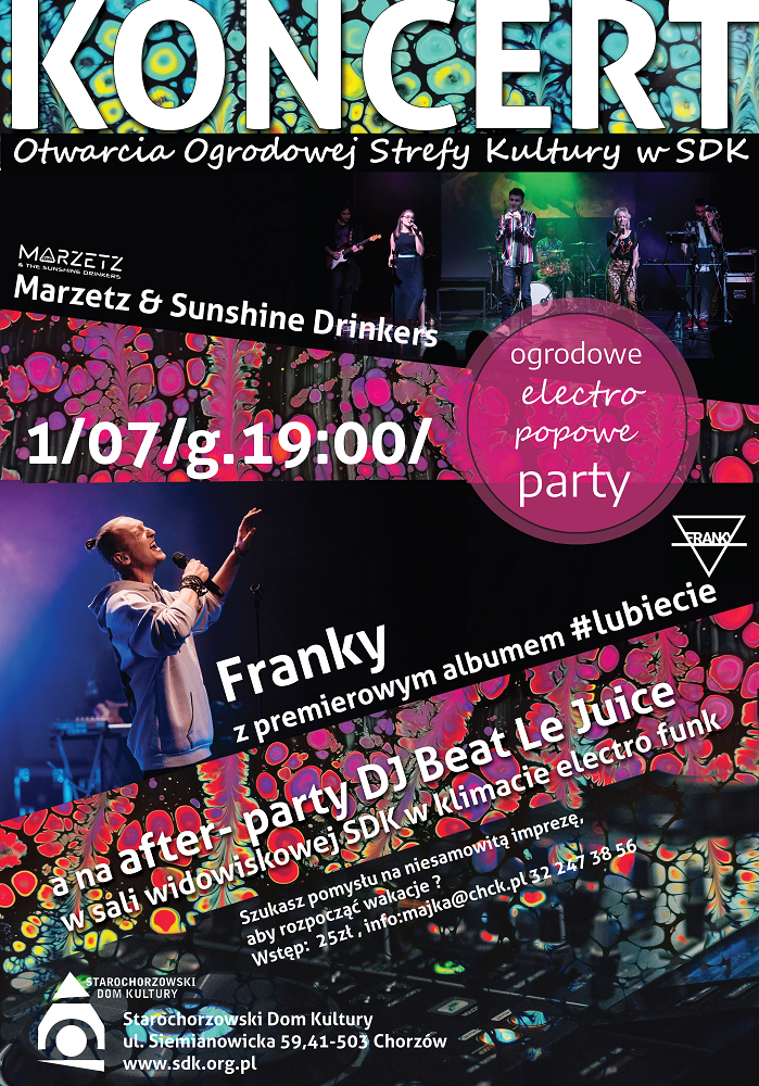 • Koncert otwarcia Ogrodowej Strefy Kultury – OGRODOWE ELEKTROPOP PARTY – Marzetz&Sunshine Drinkers, Franky